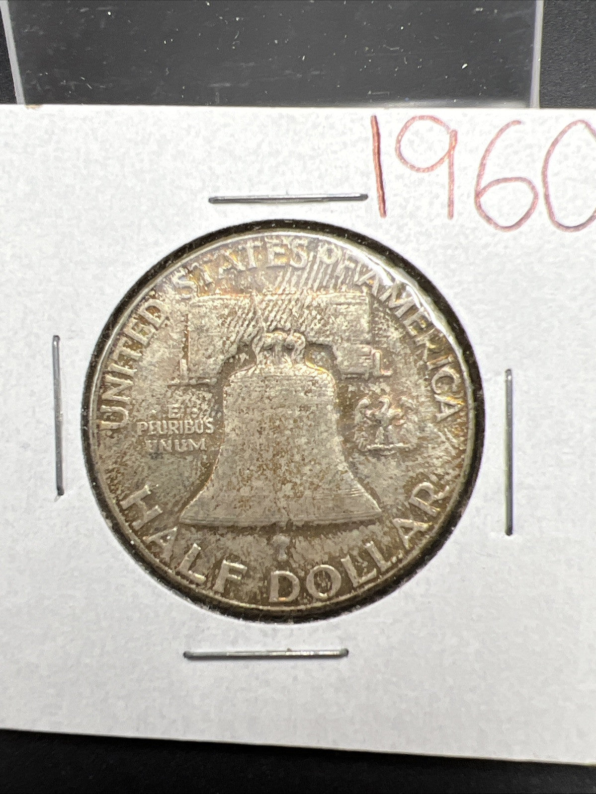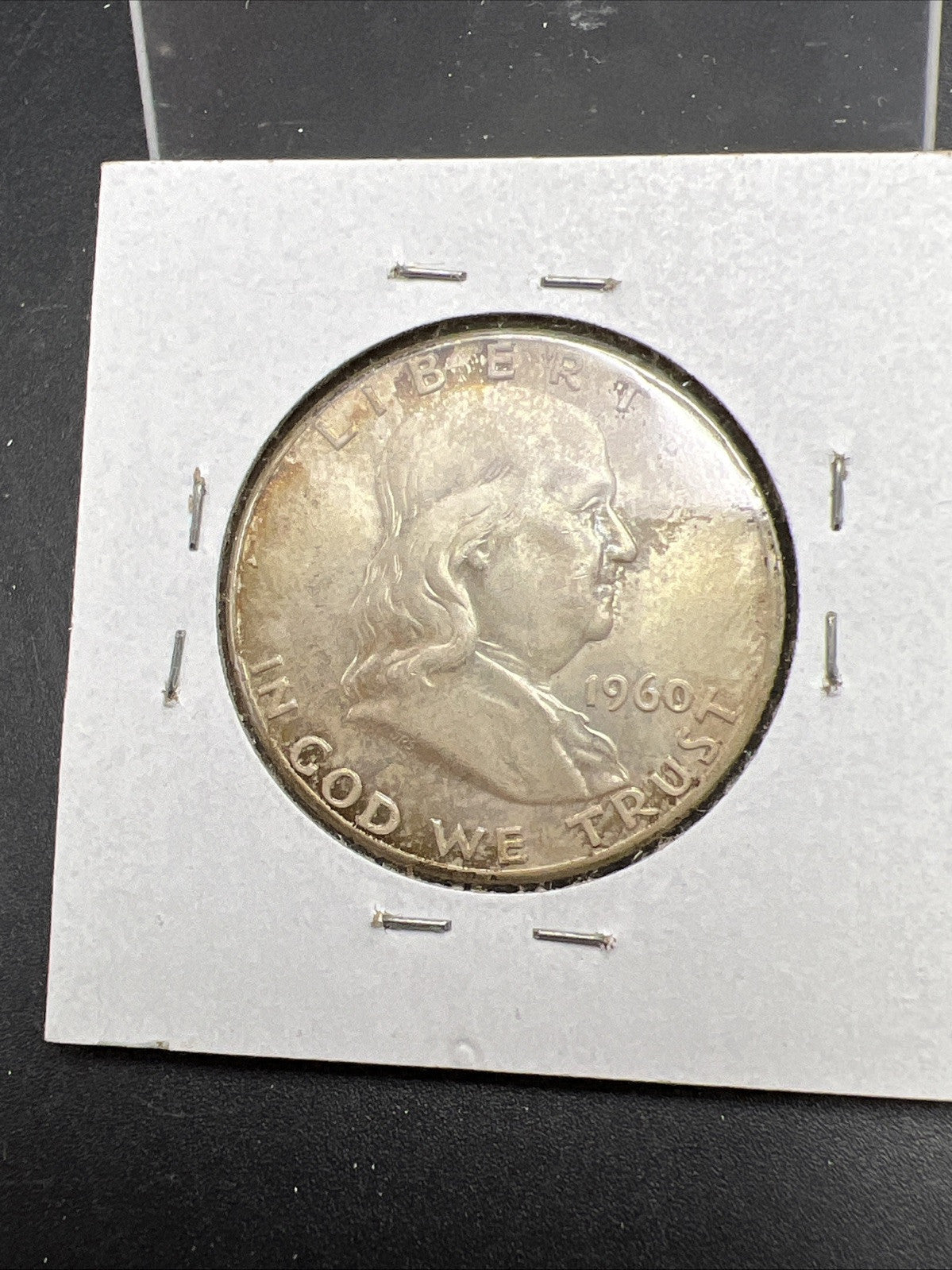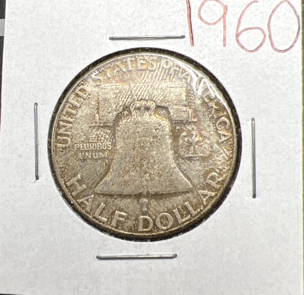 1960 P Franklin Half Dollar Silver Coin Choice AU About UNC Nice Toning Toner