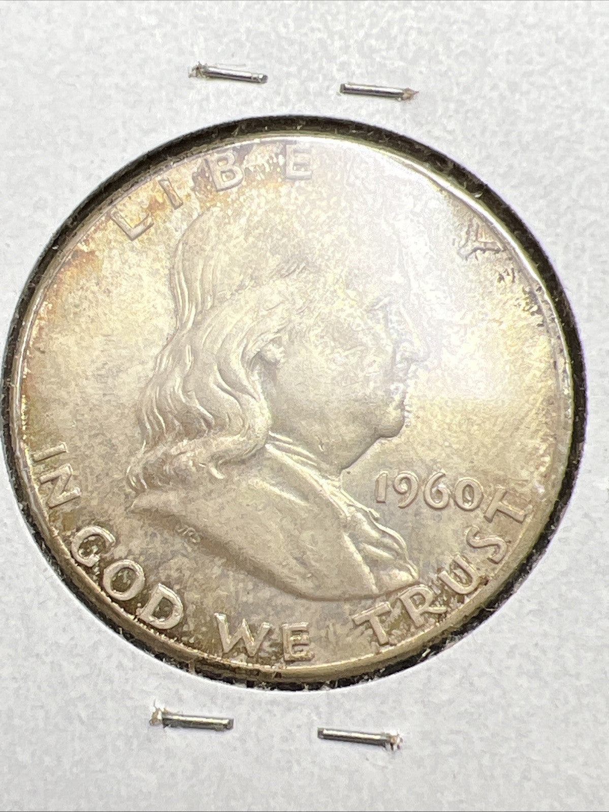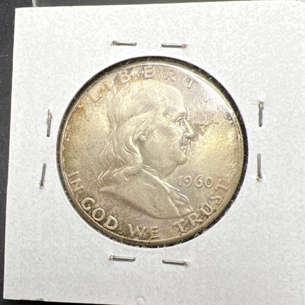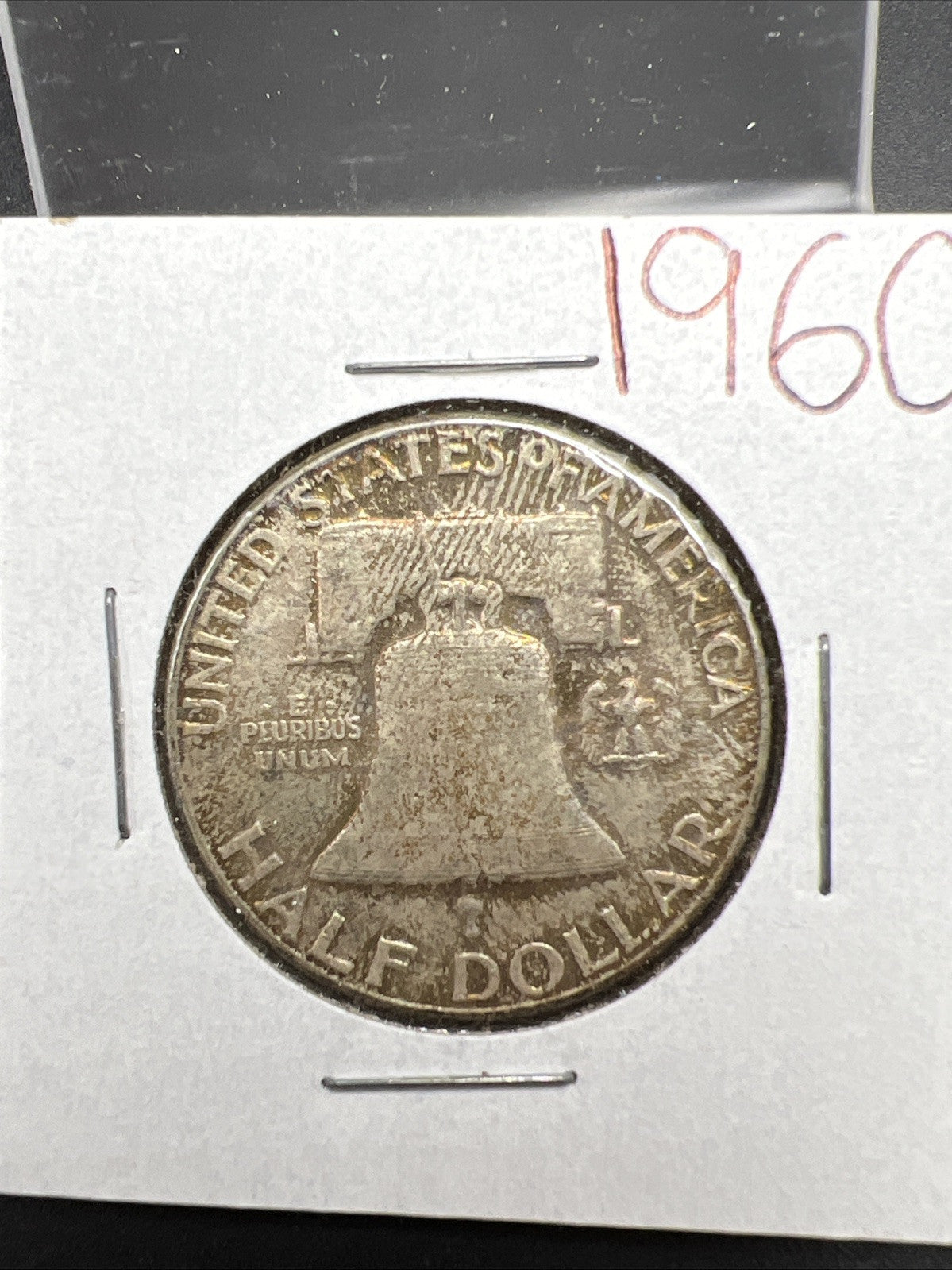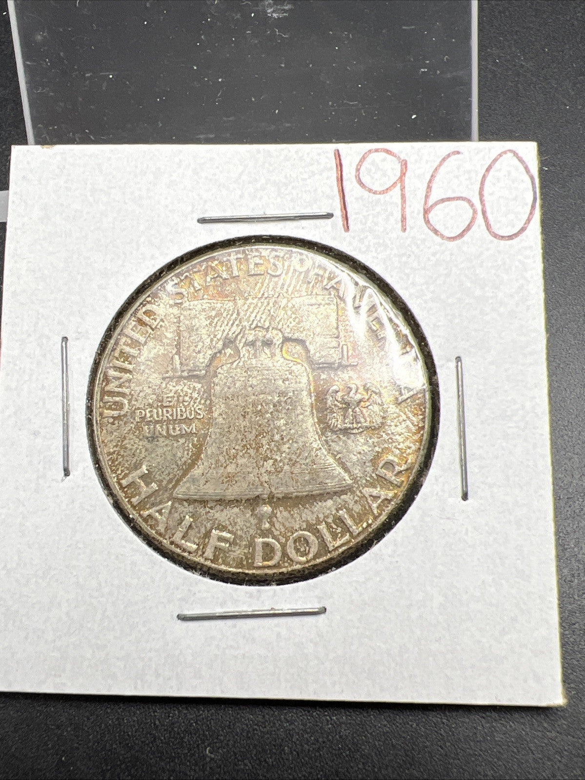 1960 P Franklin Half Dollar Silver Coin Choice AU About UNC Nice Toning Toner
