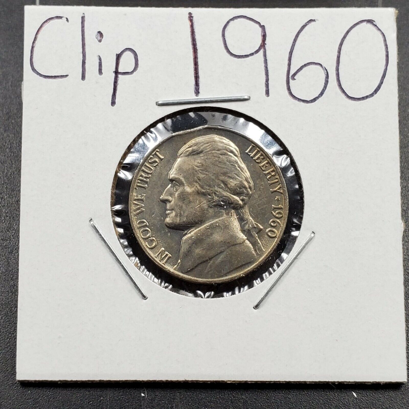 1960 P Jefferson Nickel 5c CH BU UNC CLIPPED Planchet Error Coin