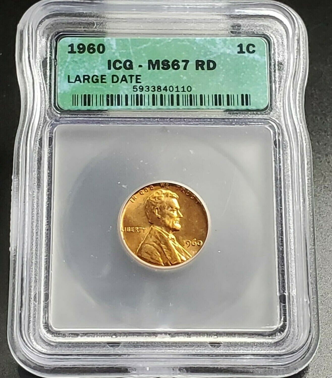 1960 P Lincoln Memorial Cent Penny Coin Retro ICG MS67 Large Date Variety