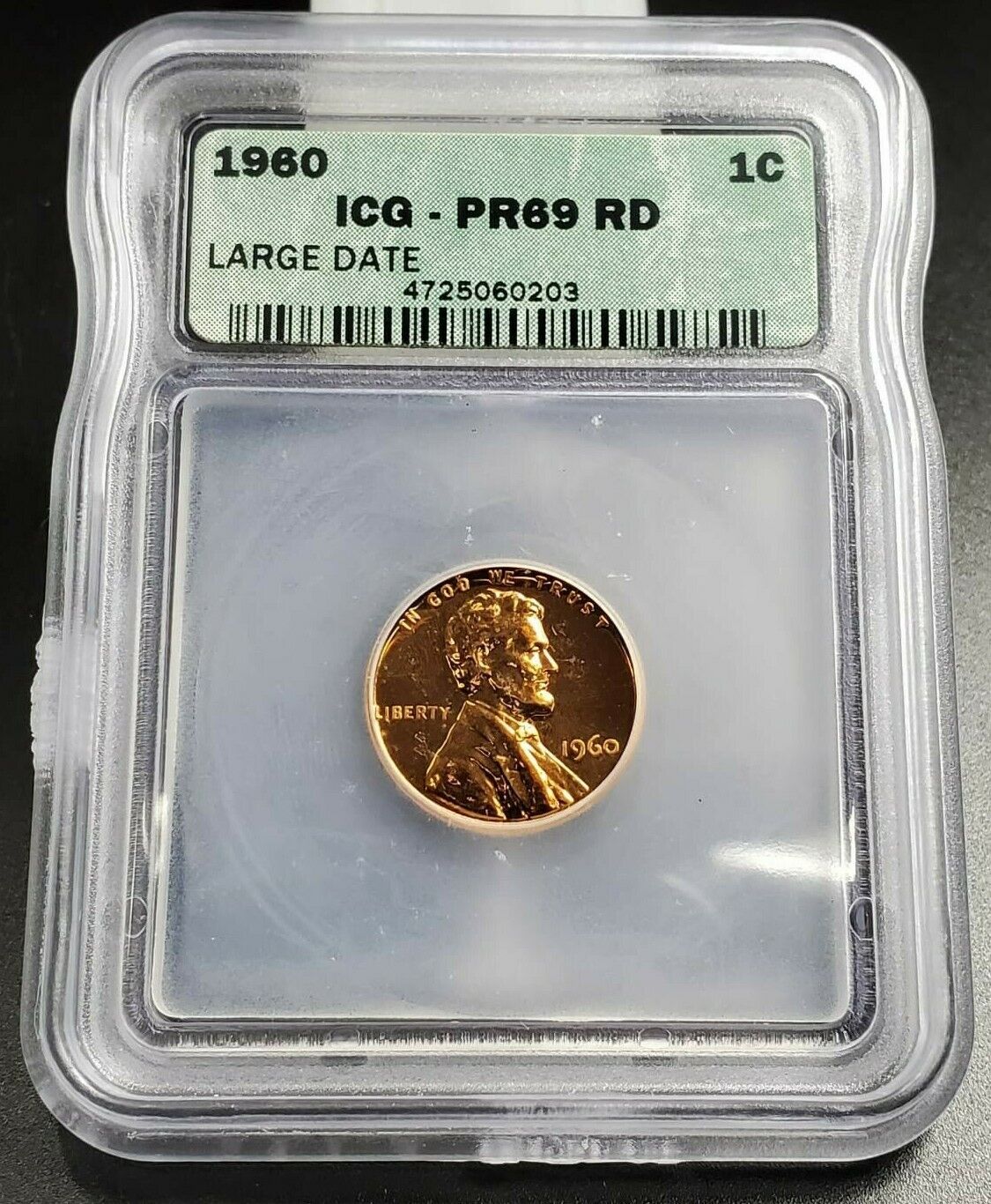1960 P Lincoln Memorial Cent Penny Coin Retro ICG PR69 RED Large Date Variety