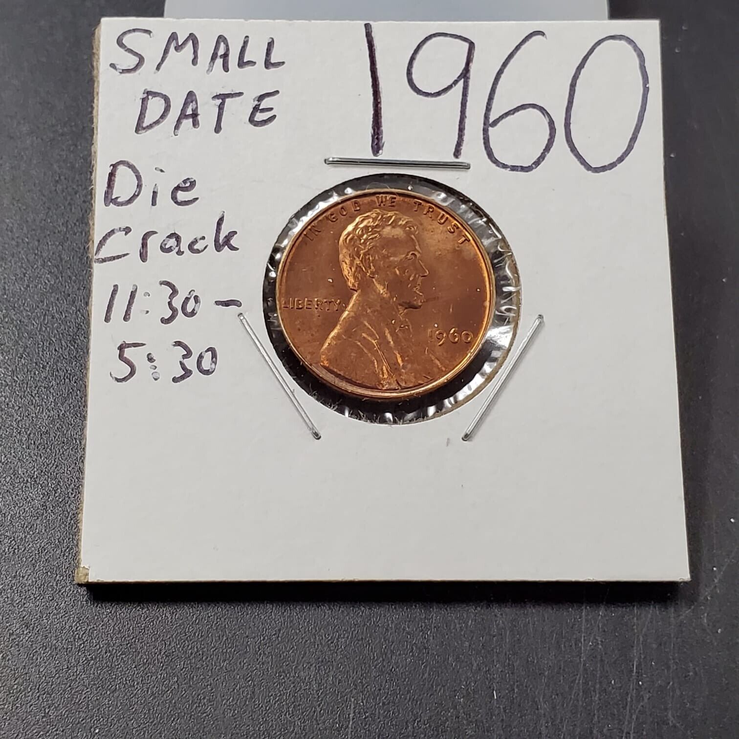 1960 P Lincoln Memorial Cent Penny Coin Small Date Variety with Die Crack CH BU