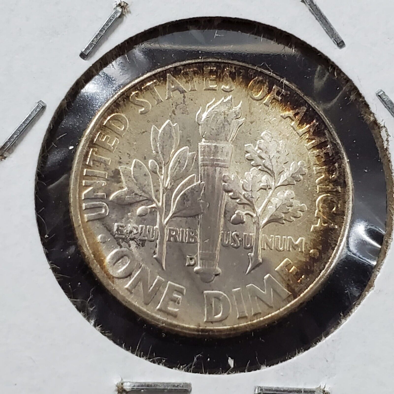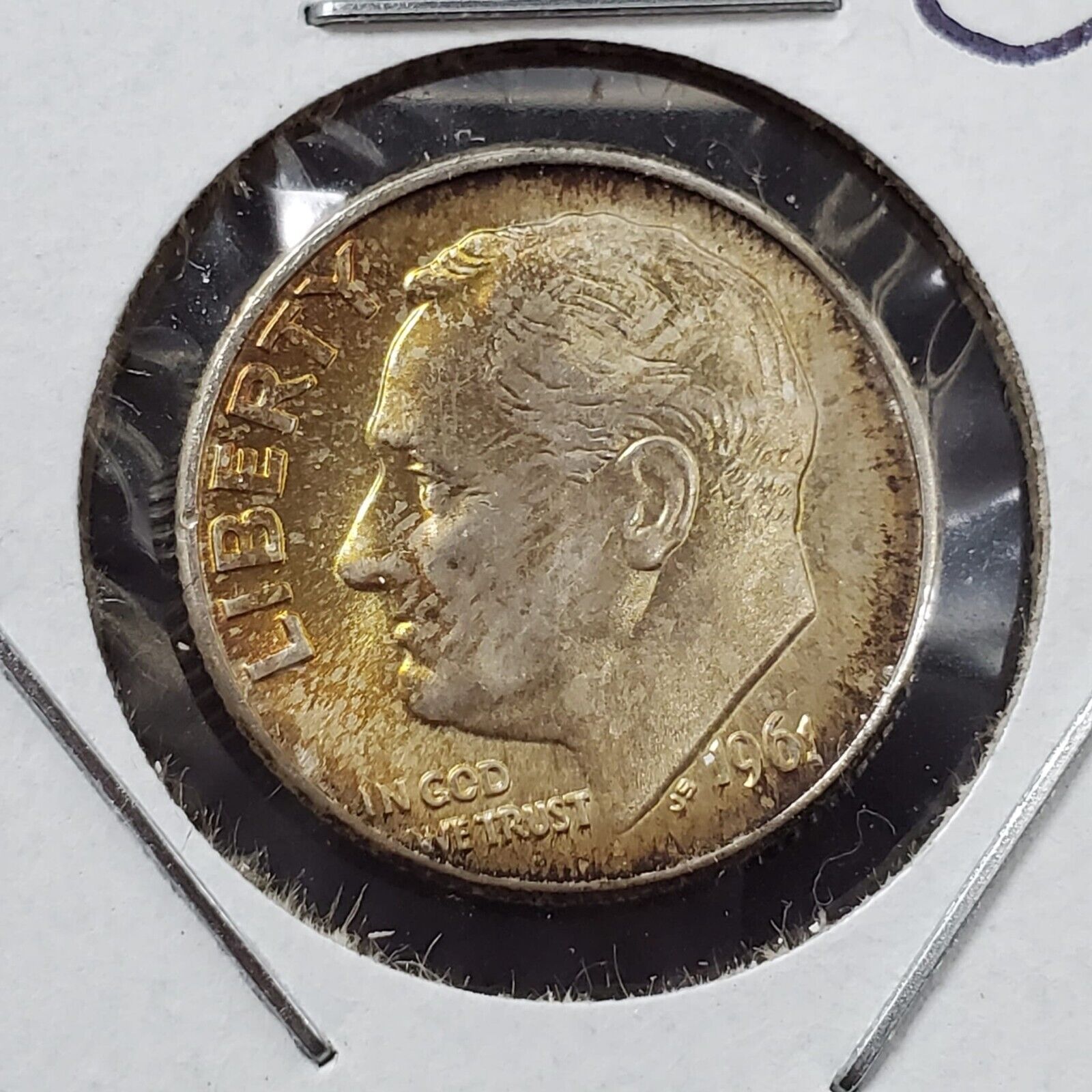 1961 D Roosevelt Silver Dime Neat Toning Toner OBV Amber