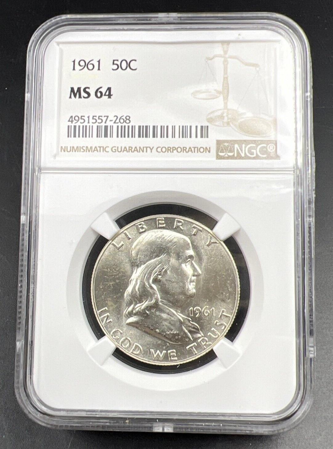 1961 P US Franklin Silver Half Dollar Coin NGC MS64 Choice BU Certified #268