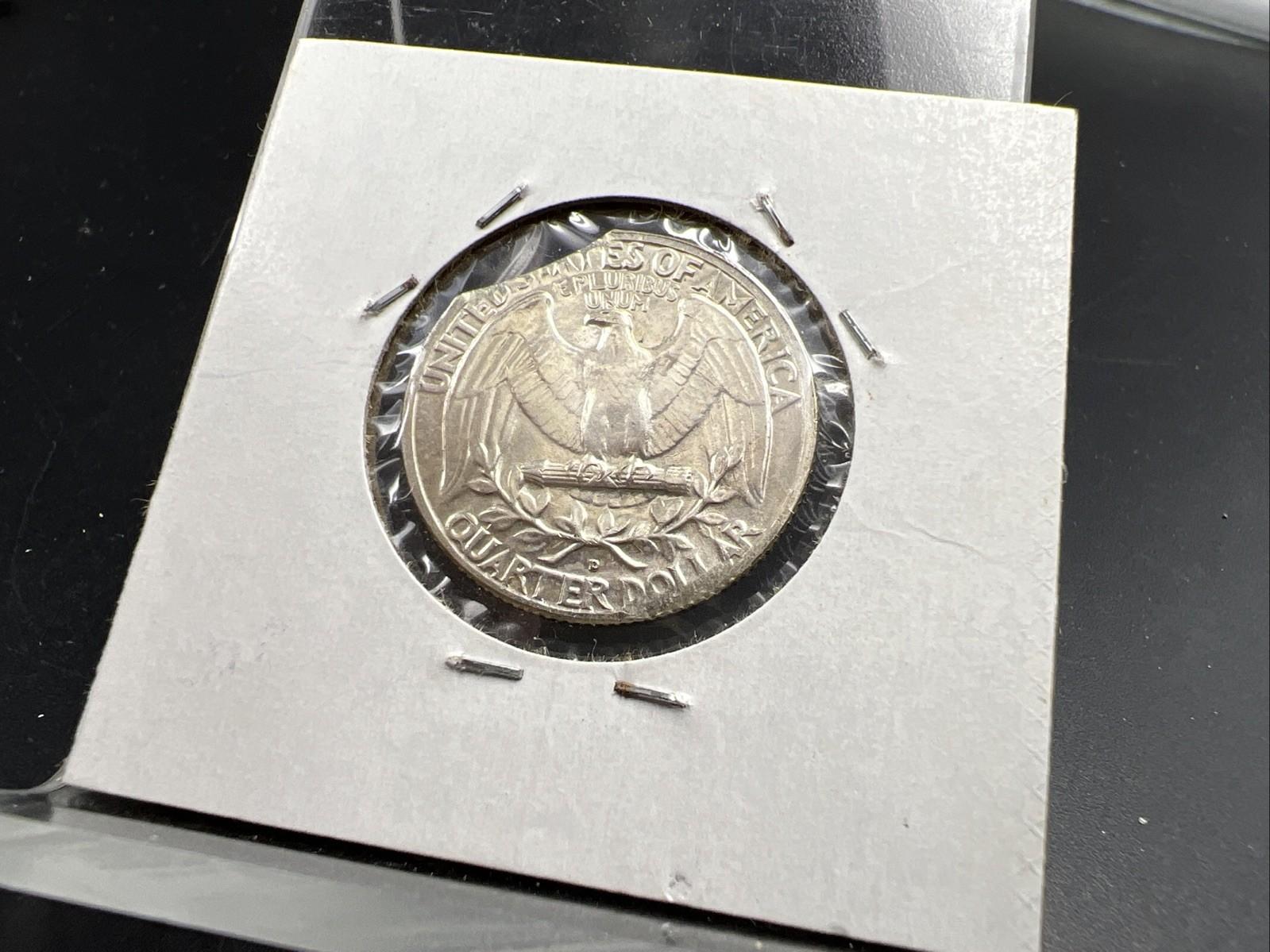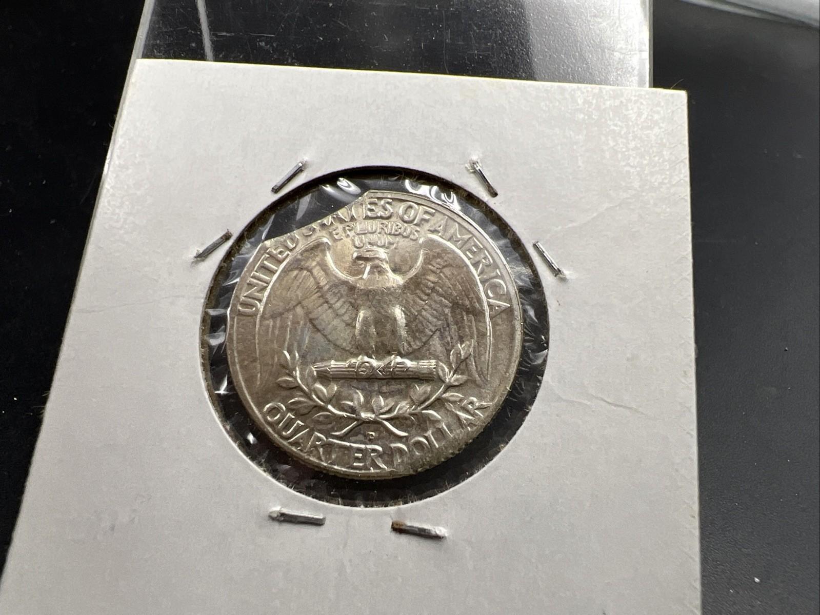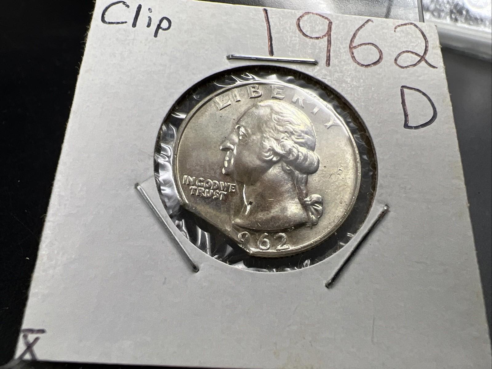 1962 D 25c Washington Silver Quarter Coin Clipped Planchet Error BU UNC