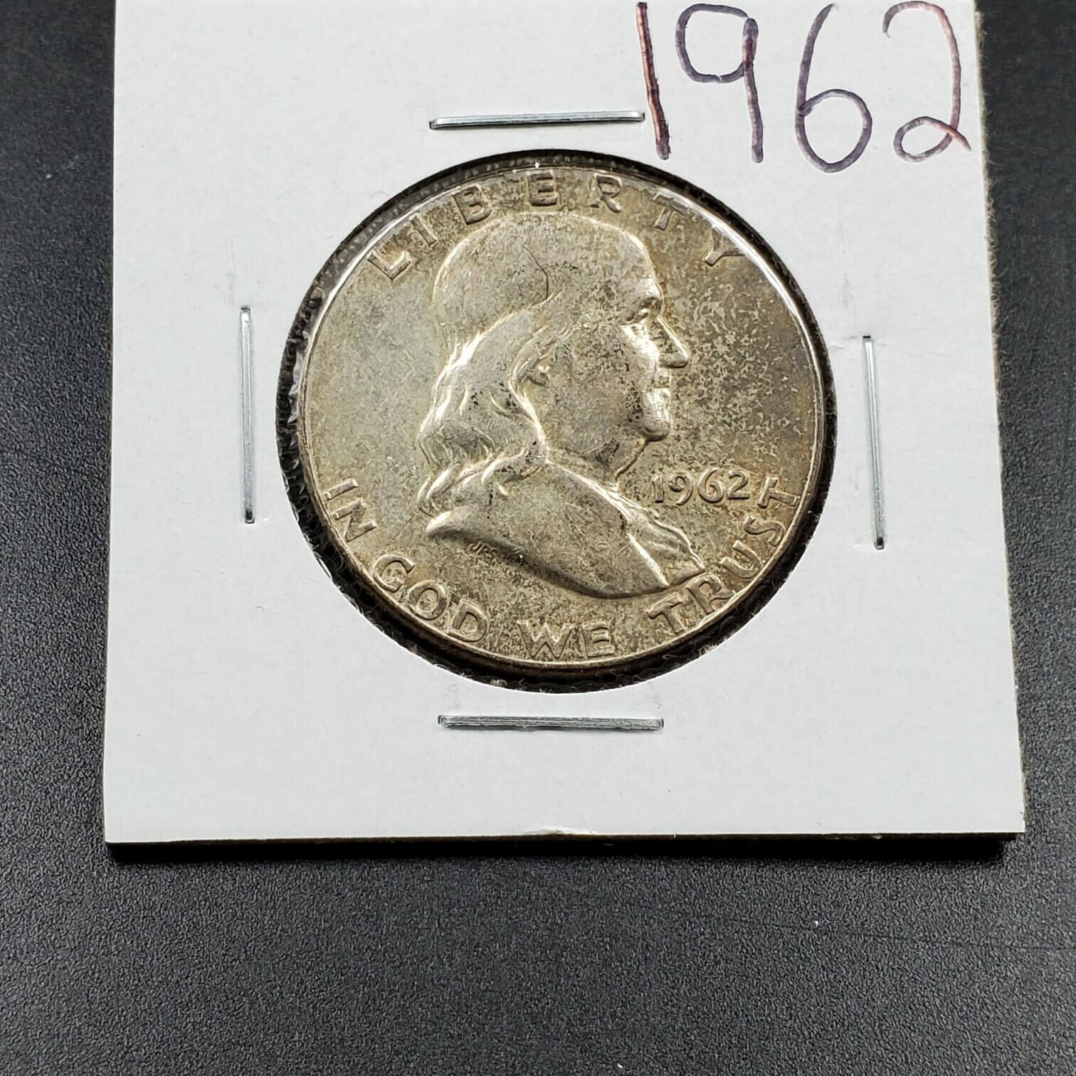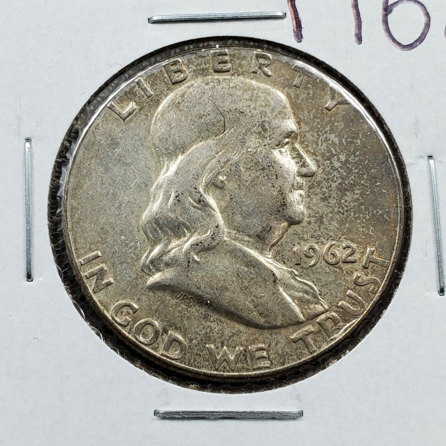 1962 P Franklin Silver Half Dollar Coin AU About UNC Circulated Neat Toning
