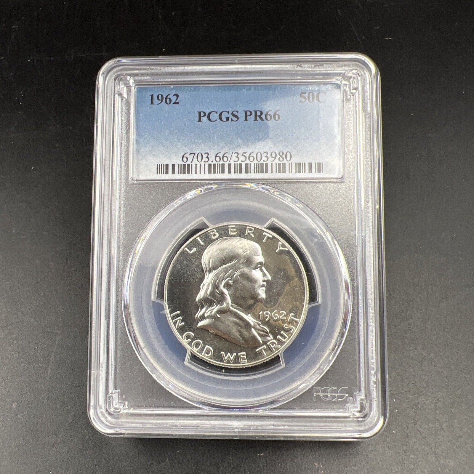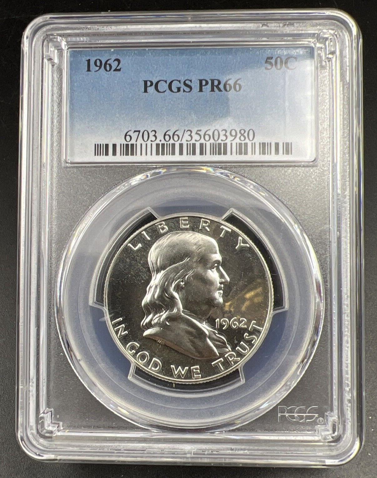 1962 US Franklin Silver Half Dollar Coin PCGS PR66 Gem Proof Certified