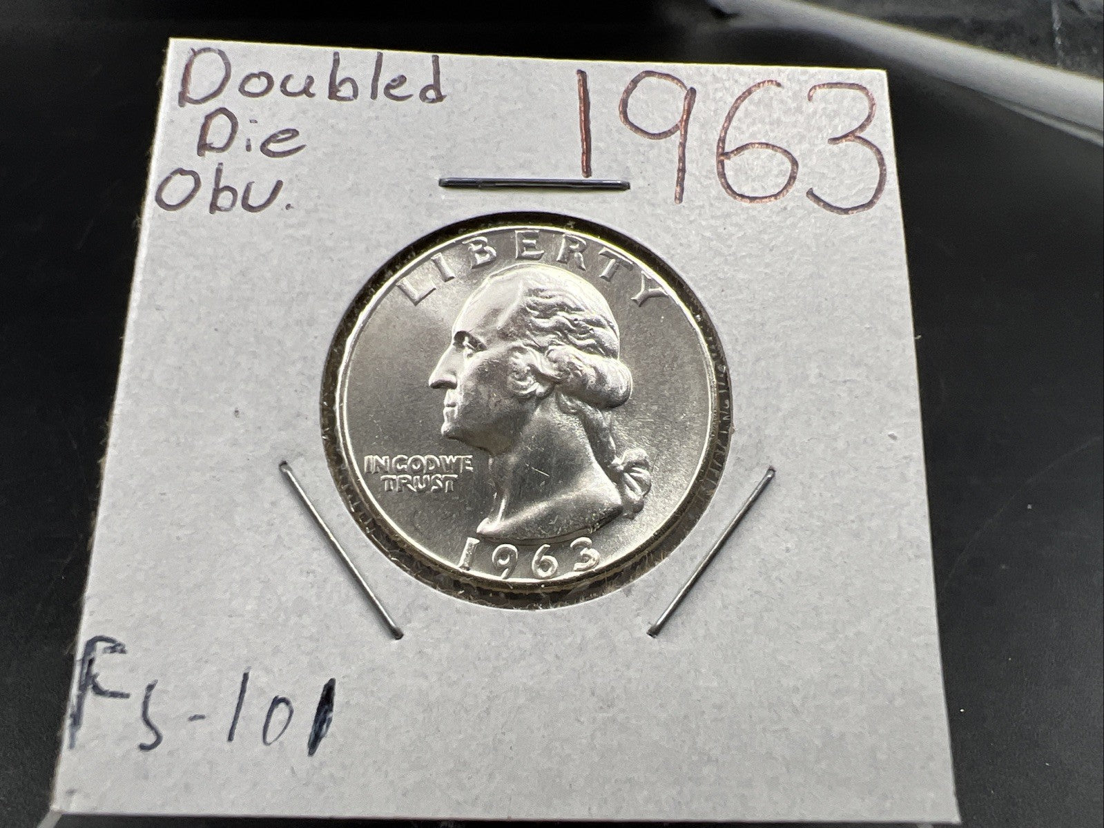 1963 25c Washington Silver Quarter Coin Choice BU UNC FS-101 Double Die Obverse