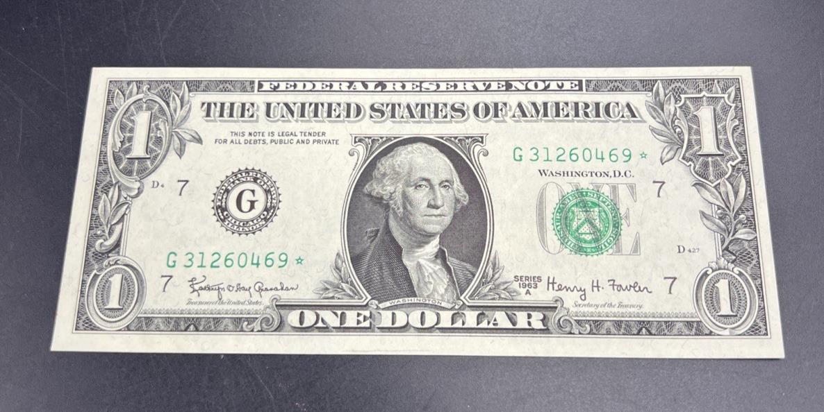 1963 A * Star $1 FRN Federal Reserve Note Green Seal Choice UNC Uncirculated #69