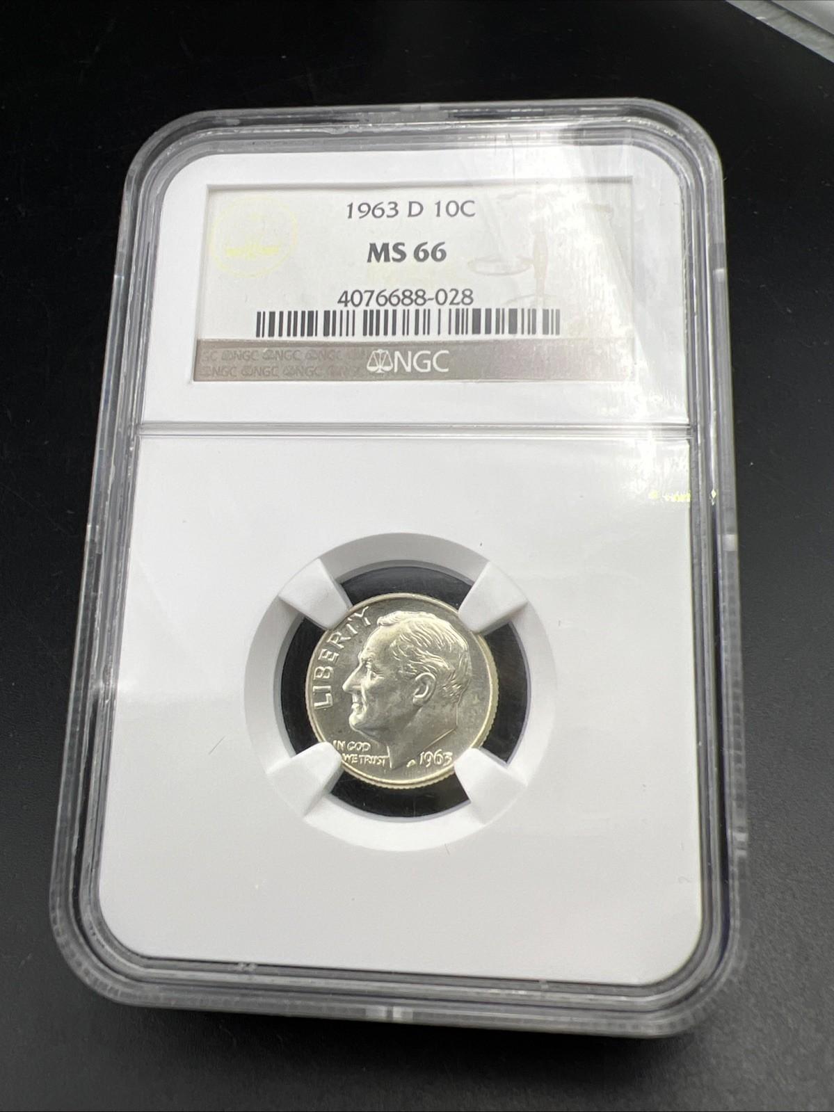 1963 D 10c Roosevelt Silver Dime Coin NGC MS66 Gem BU Certified #028