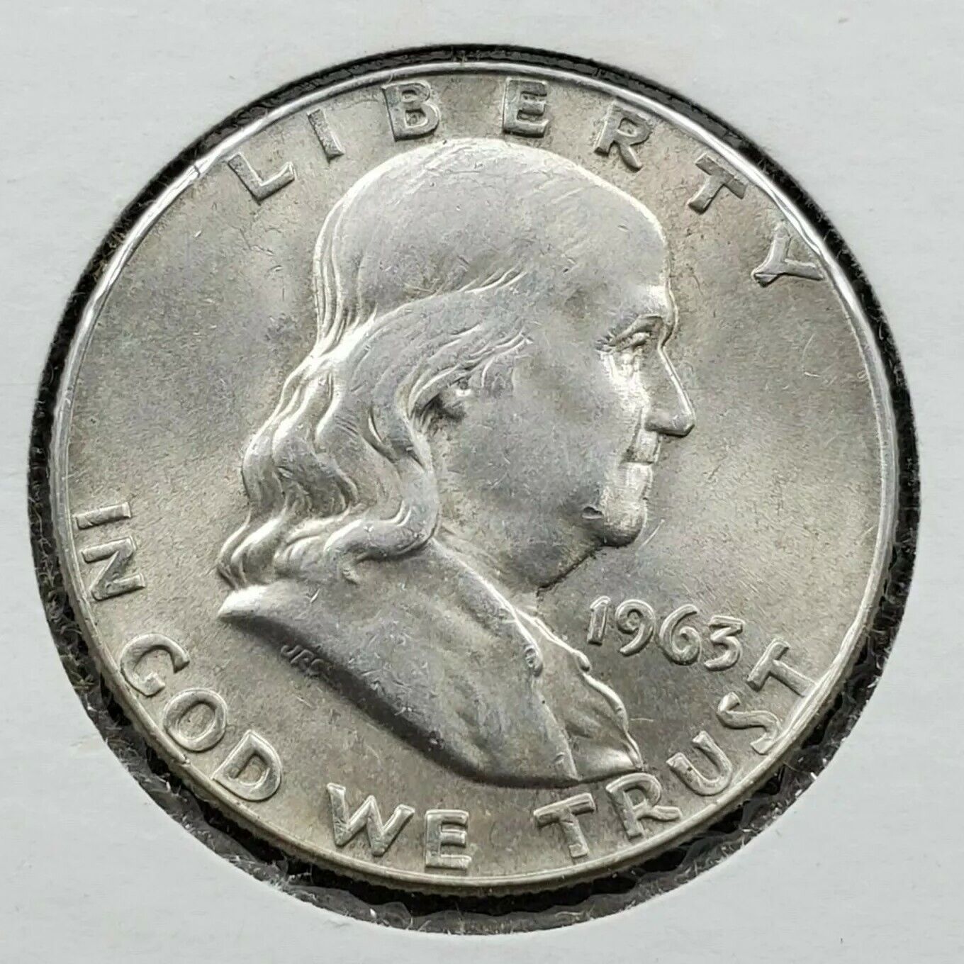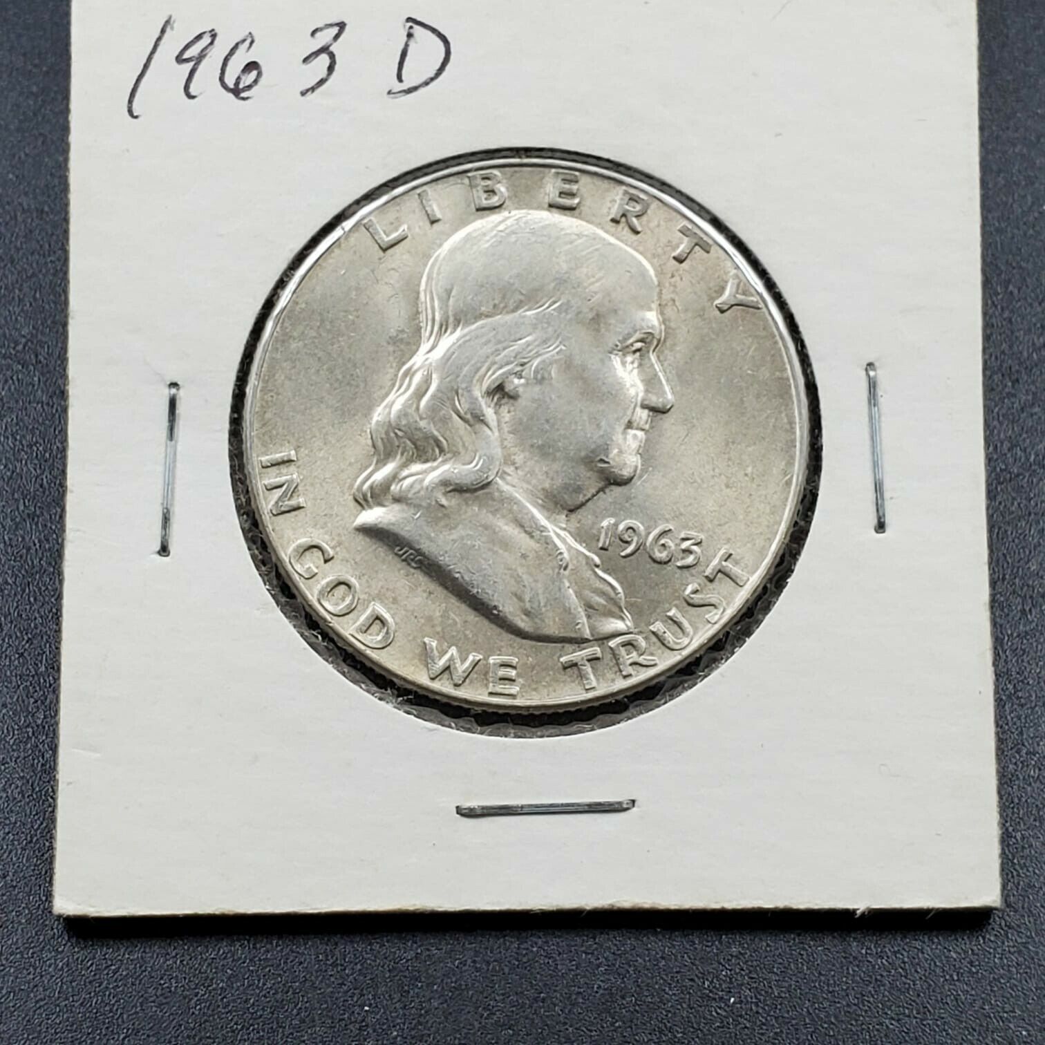 1963 D Franklin Silver Half Dollar Coin Choice BU Uncirculated Mostly Untoned