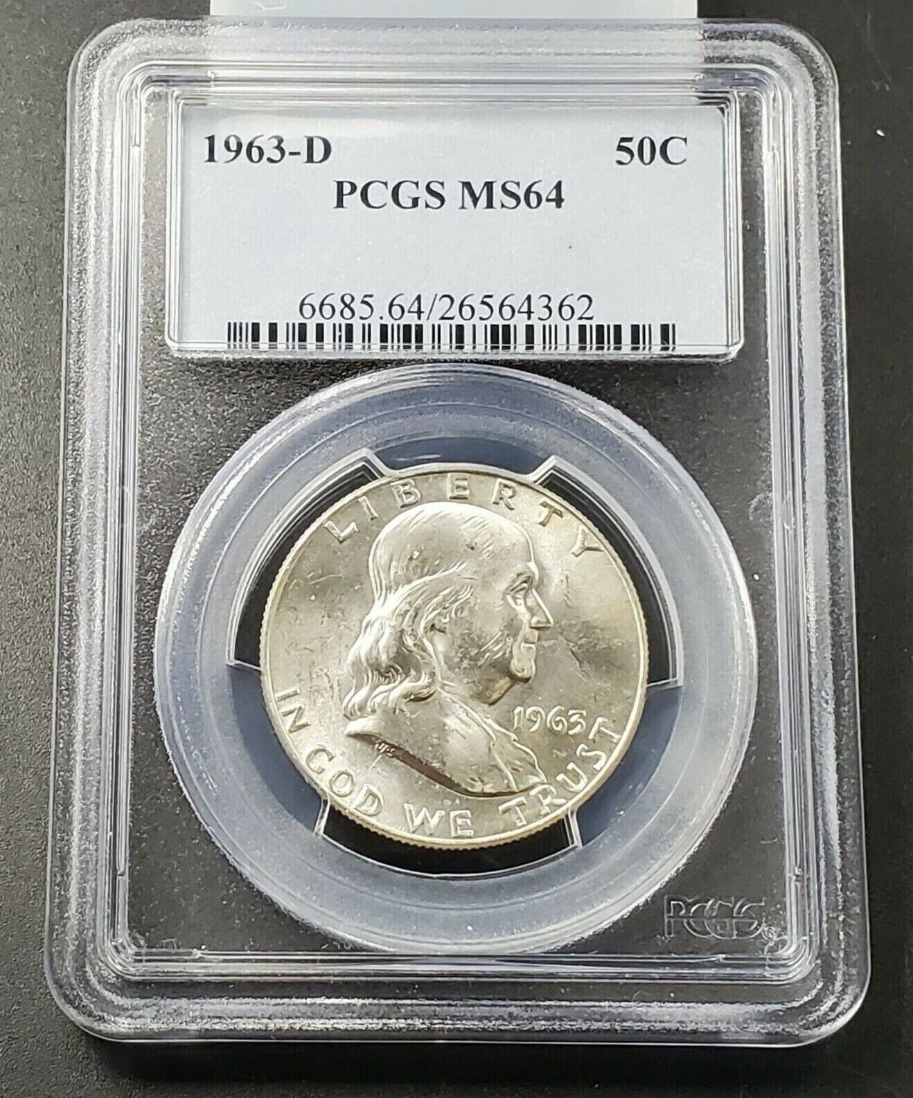 1963 D Franklin Silver Half Dollar Coin PCGS MS64 CH BU Last Year of Type