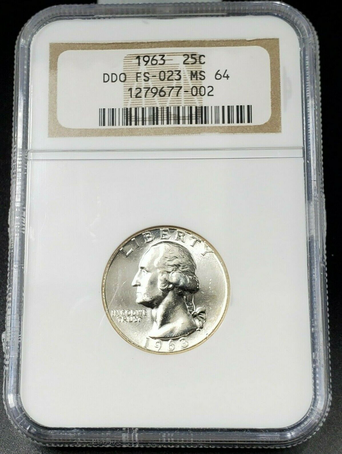 1963 P 25c Washington Variety Quarter DDO Double Die OBV FS-101 FS-023 NGC MS64