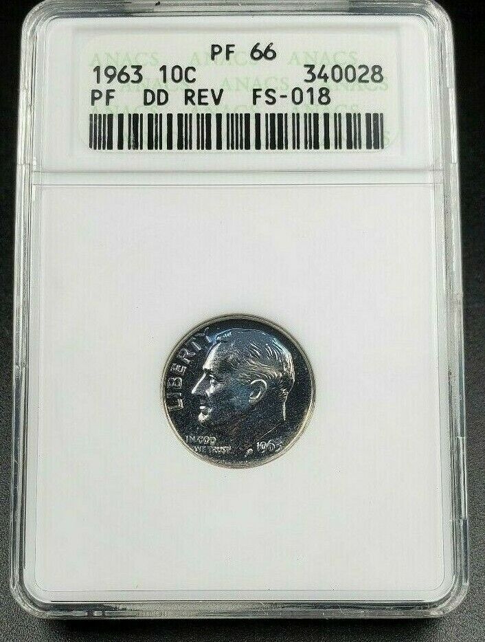 1963 P Roosevelt Proof Silver Dime Variety ANACS PF66 FS-803 DDR PQ Blue Toning FS-018 previous designation