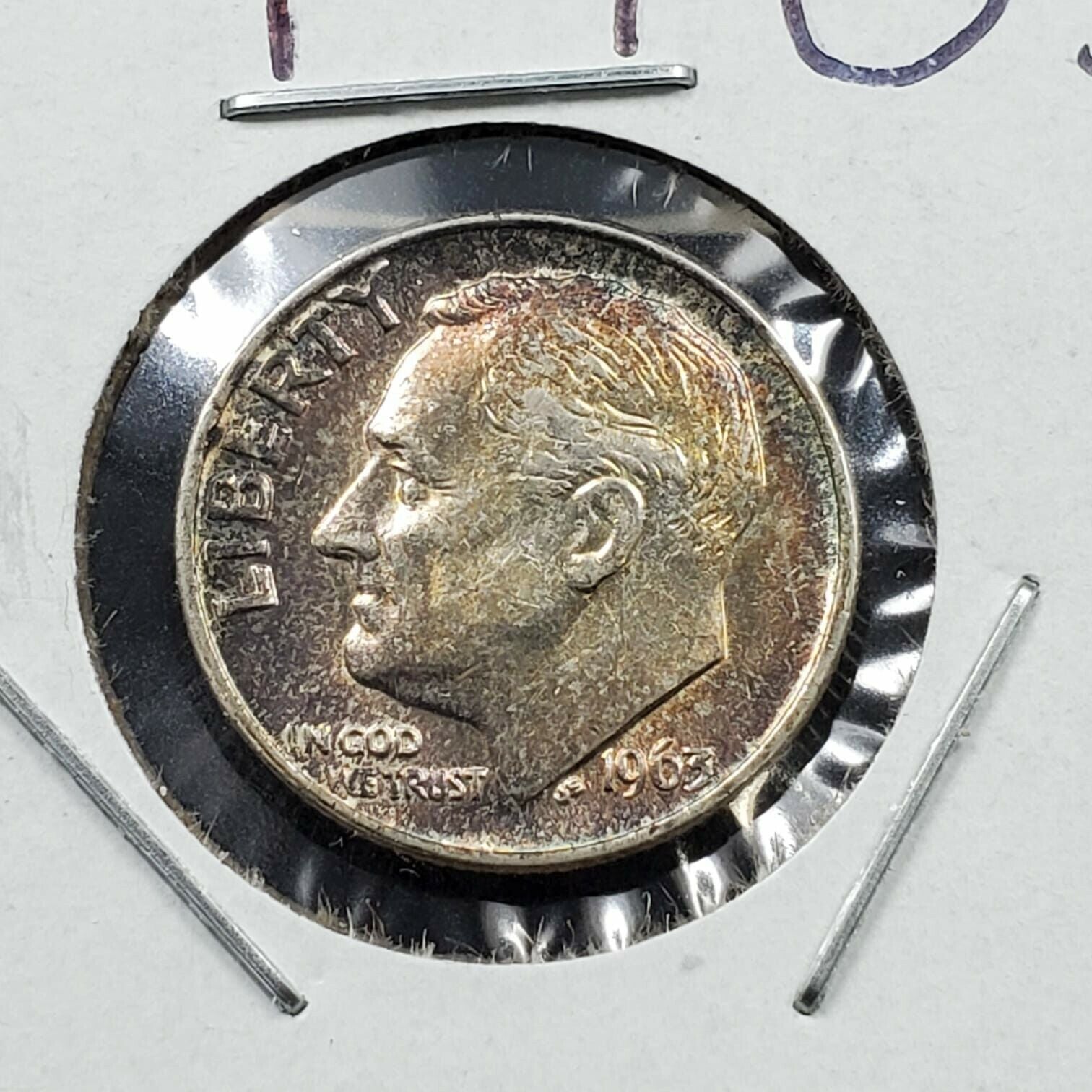 1963 P Roosevelt Silver Dime Coin BU Uncirculated Original PQ Toning Toner OBV
