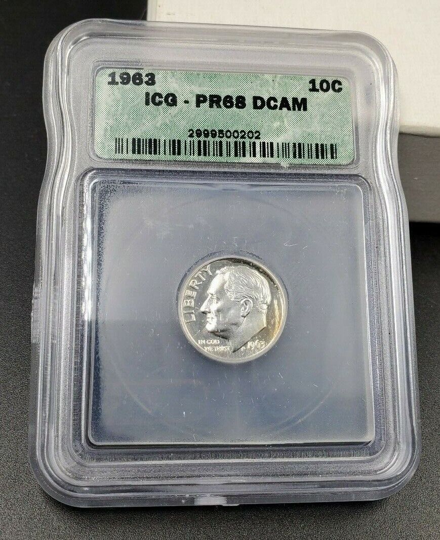 1963 P Roosevelt Silver Dime Coin PR68 DCam Deep Cameo ICG Gem Proof Nice Coin