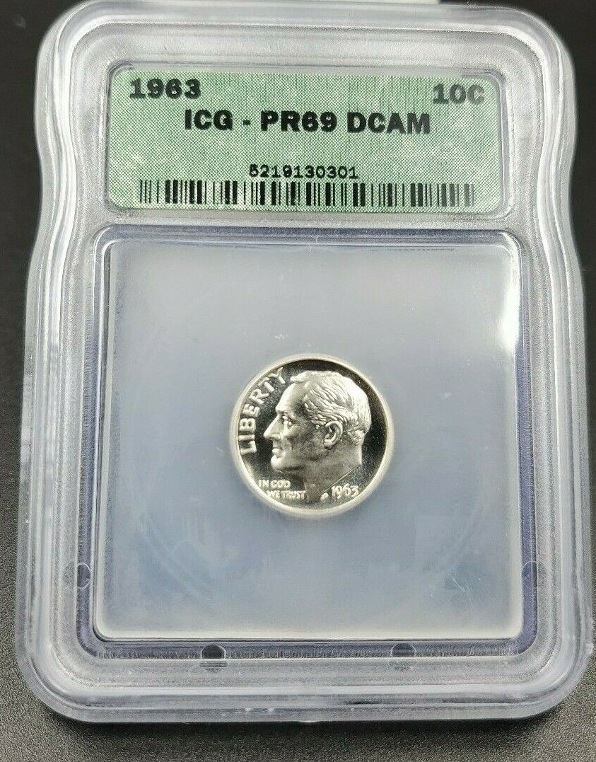 1963 P Roosevelt Silver Dime Coin Vintage ICG PR69 DCAM Deep Cameo Proof Gem