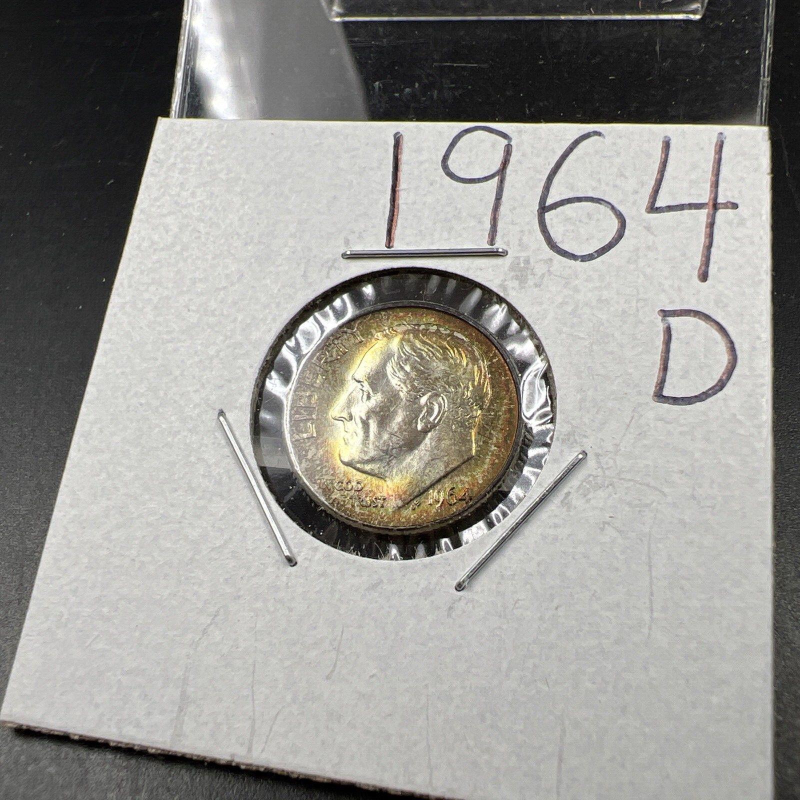 1964 D 10c Roosevelt Dime Coin CH BU Nice Amber Toning Original Toner SKU#OG3