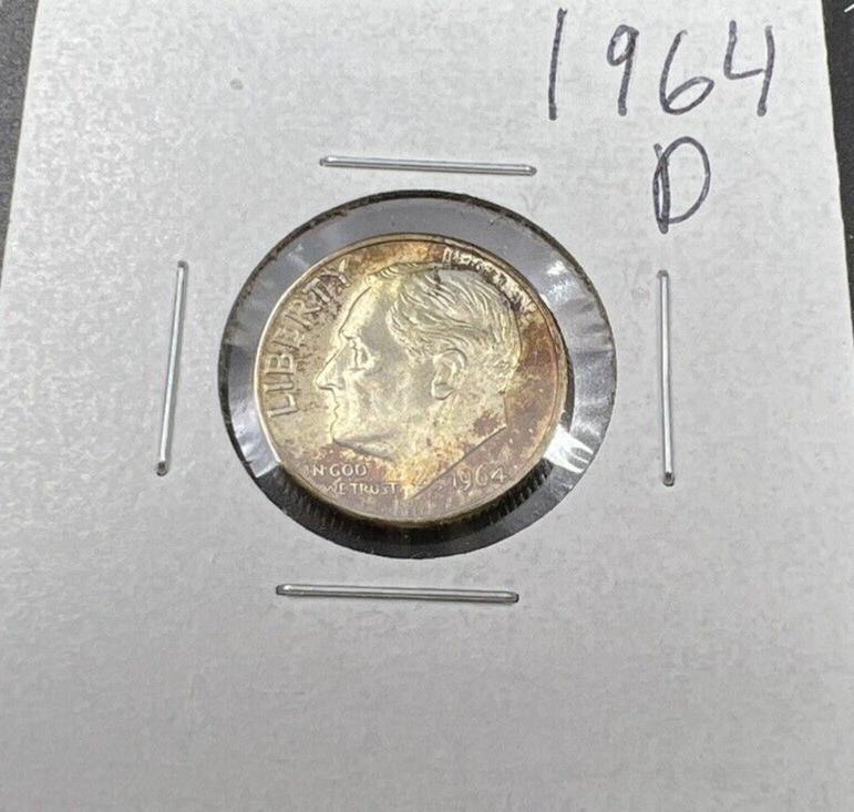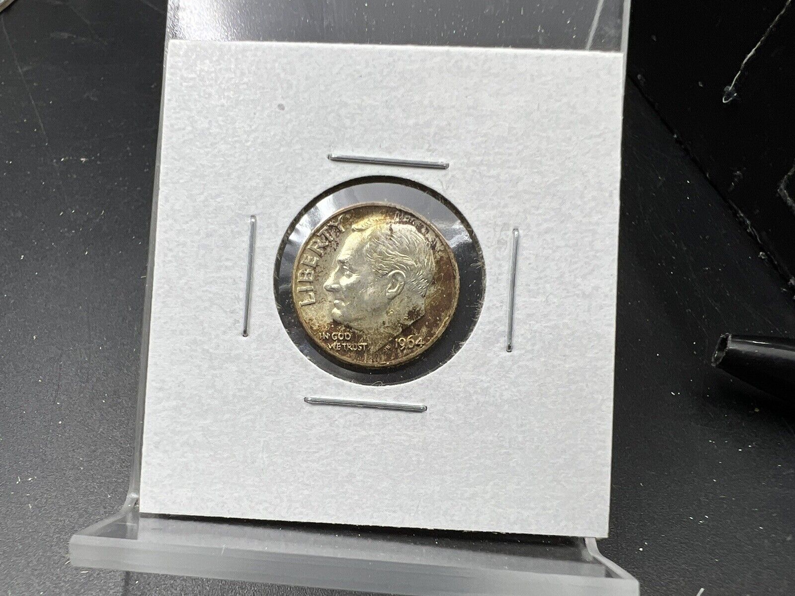1964 D 10c Roosevelt Silver Dime Coin BU UNC Neat Toning Toner Amber