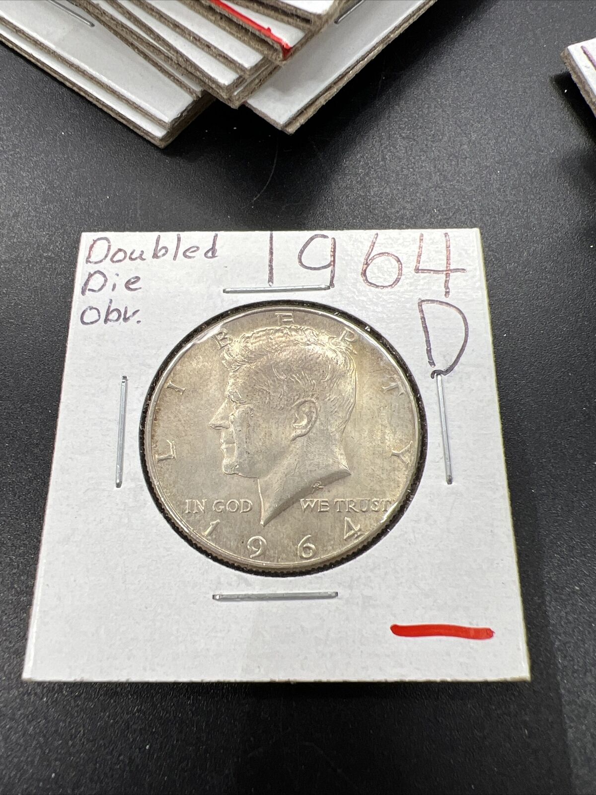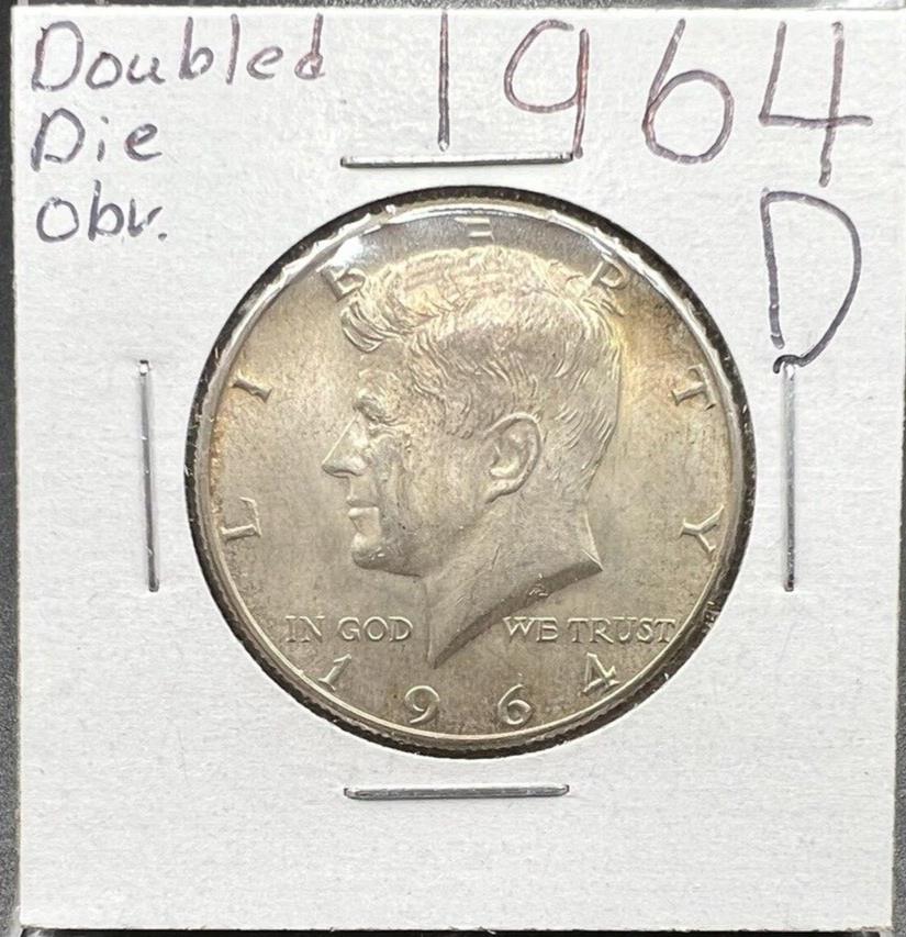 1964 D 50C Kennedy Half Dollar Coin CH AU DDO Double Die OBV Minor Variety TONER