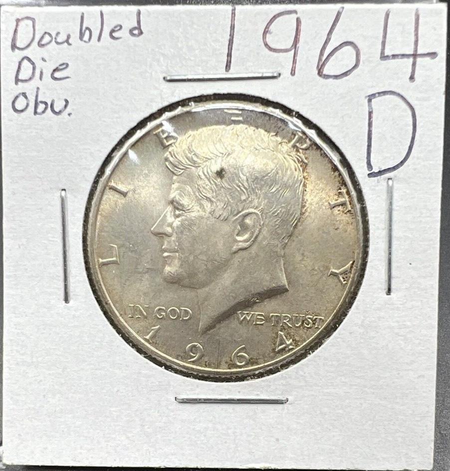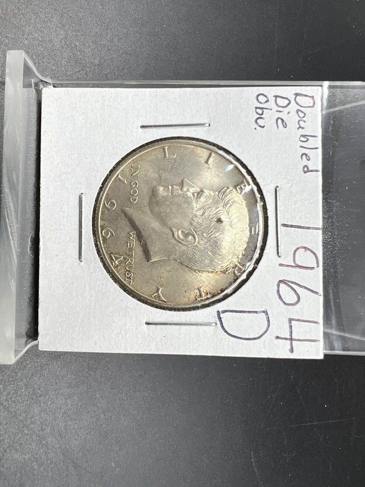1964 D 50C Kennedy Half Dollar Coin CH-AU DDO Double Die OBV Minor Variety TONER
