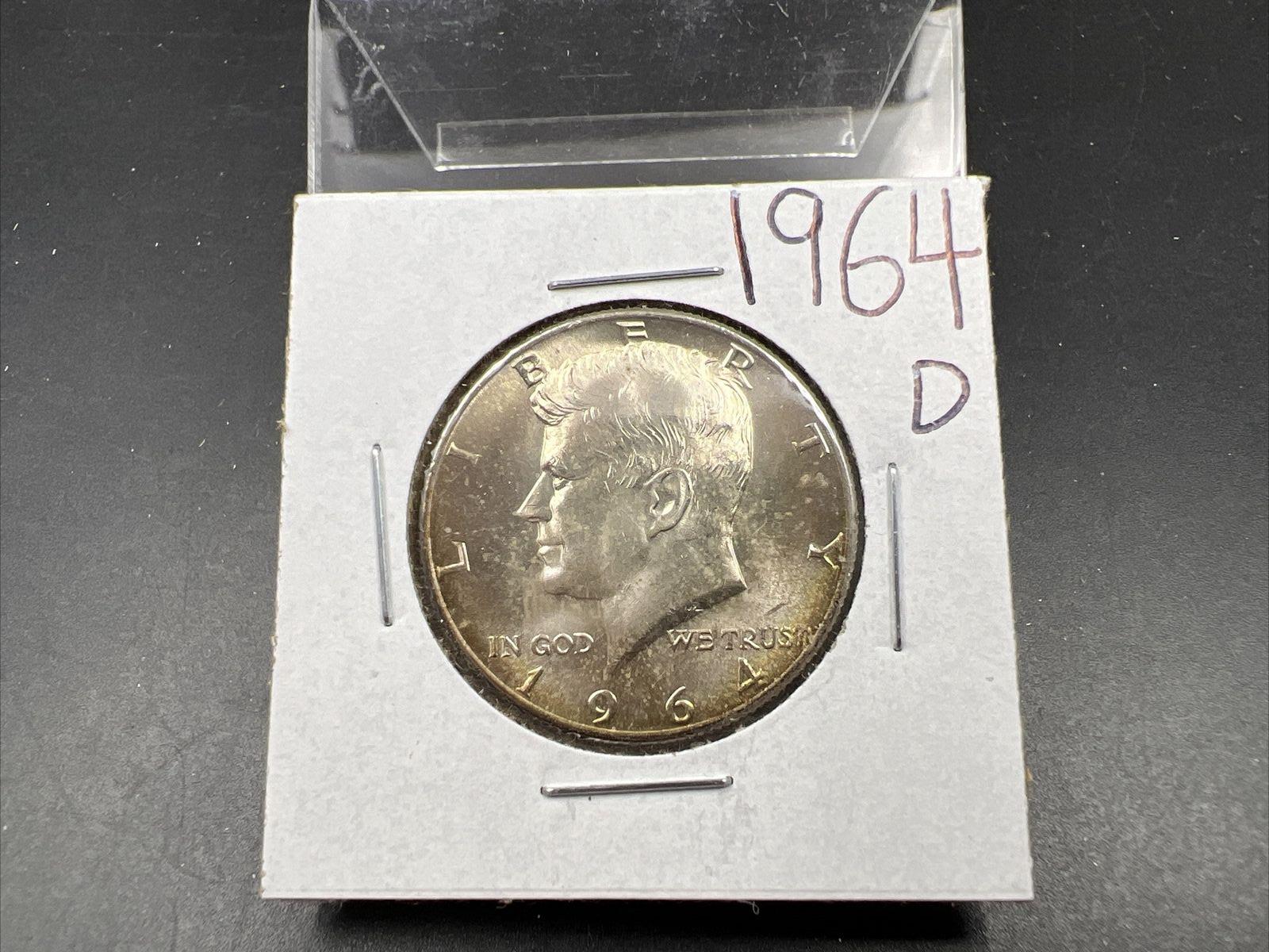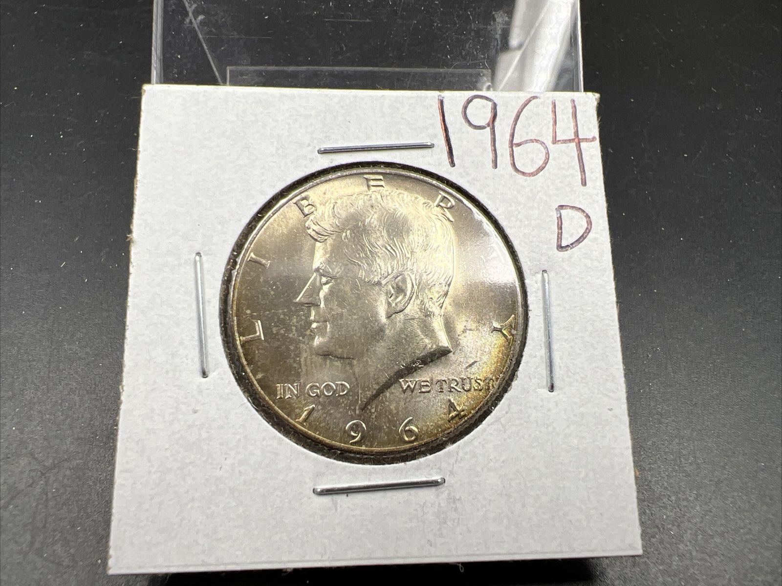 1964 D 50c Kennedy Silver Half Dollar CH BU UNC NEAT Toning Denver Mint #OGBN
