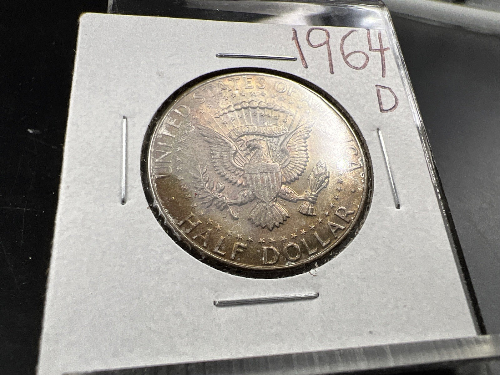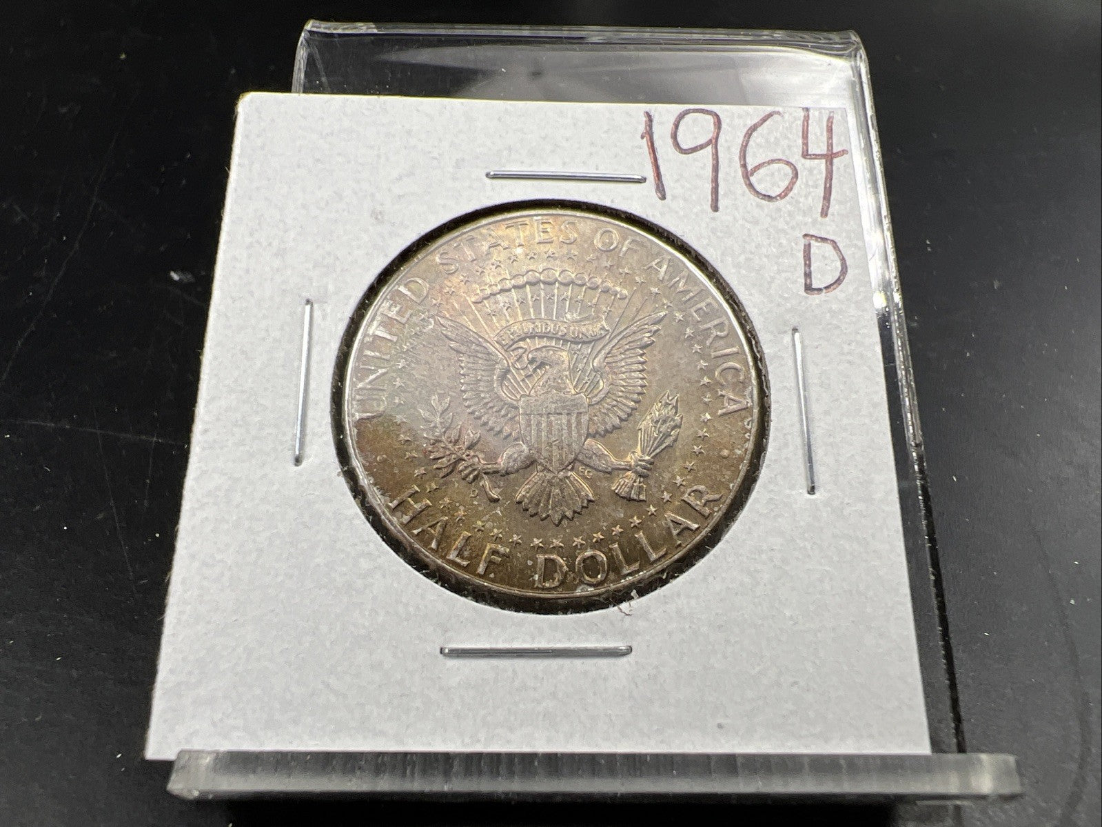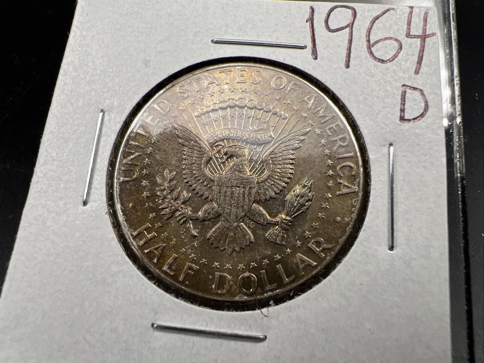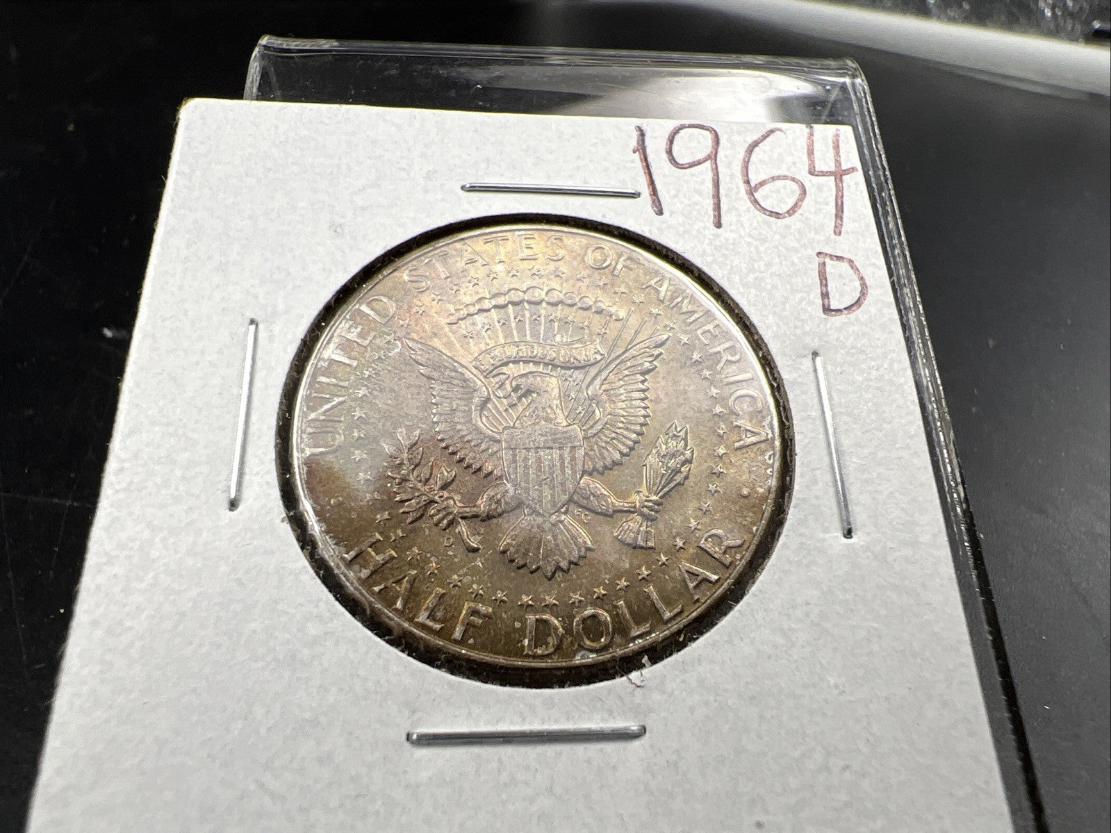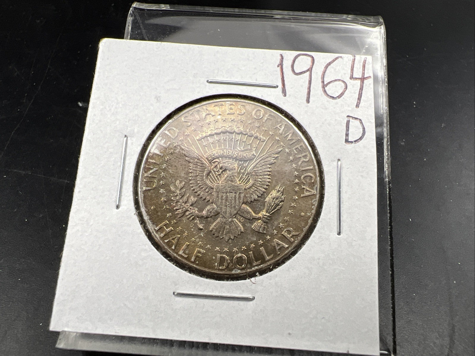 1964 D 50c Kennedy Silver Half Dollar Coin Choice AU / UNC Amber Toning SKU#J