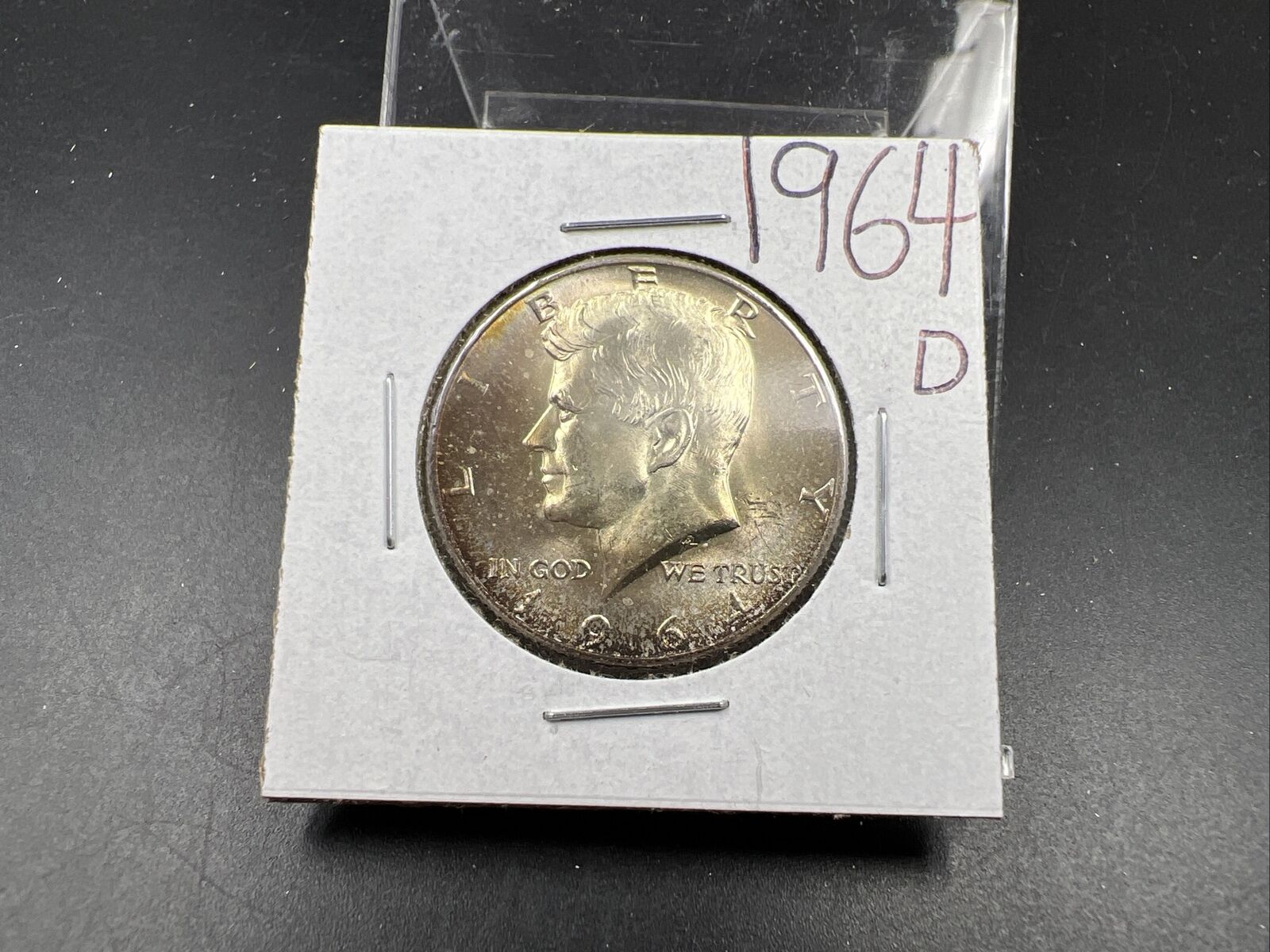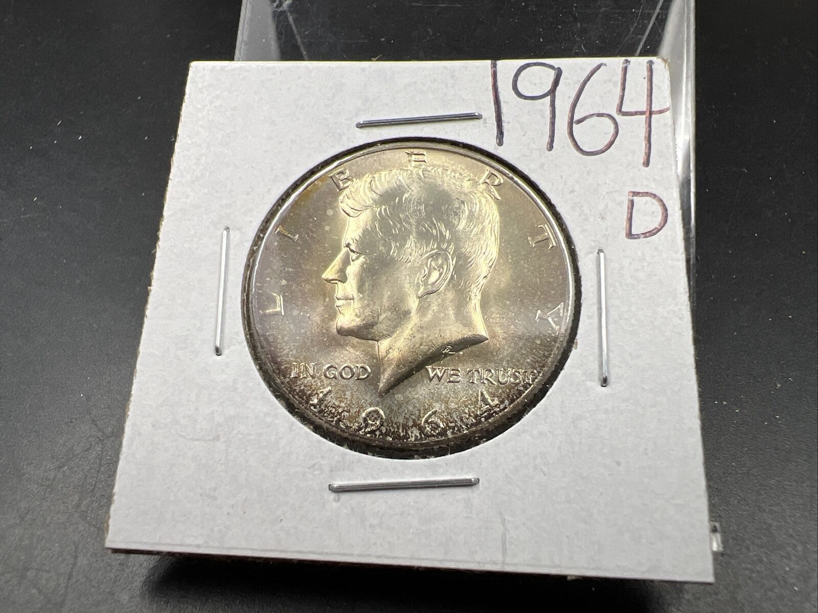1964 D 50c Kennedy Silver Half Dollar GEM BU UNC NEAT Toning Denver Mint #ORNG