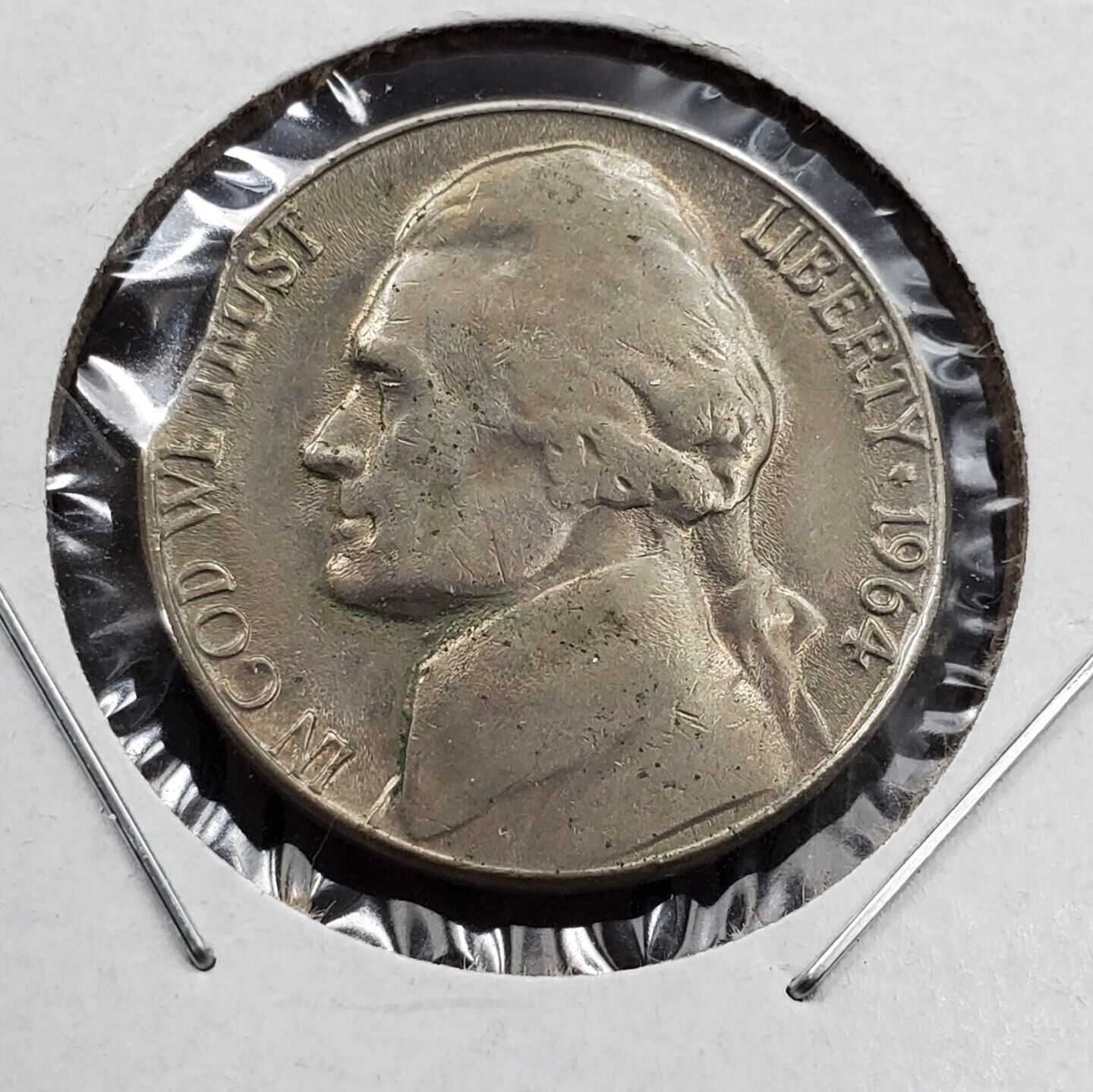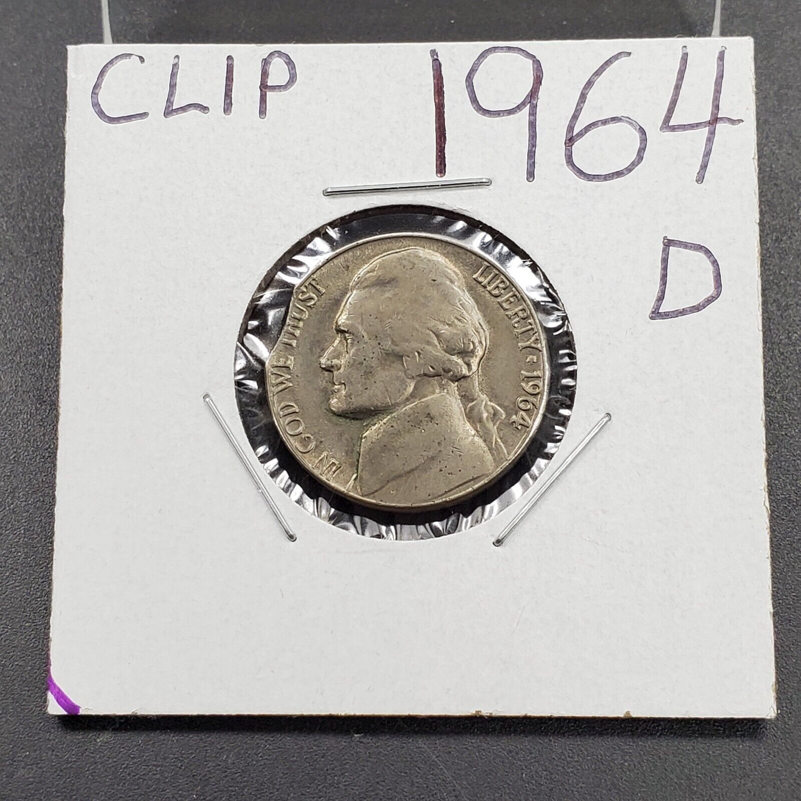 1964 D Jefferson Nickel 5c Clip Clipped Plachet Error coin AU About UNC