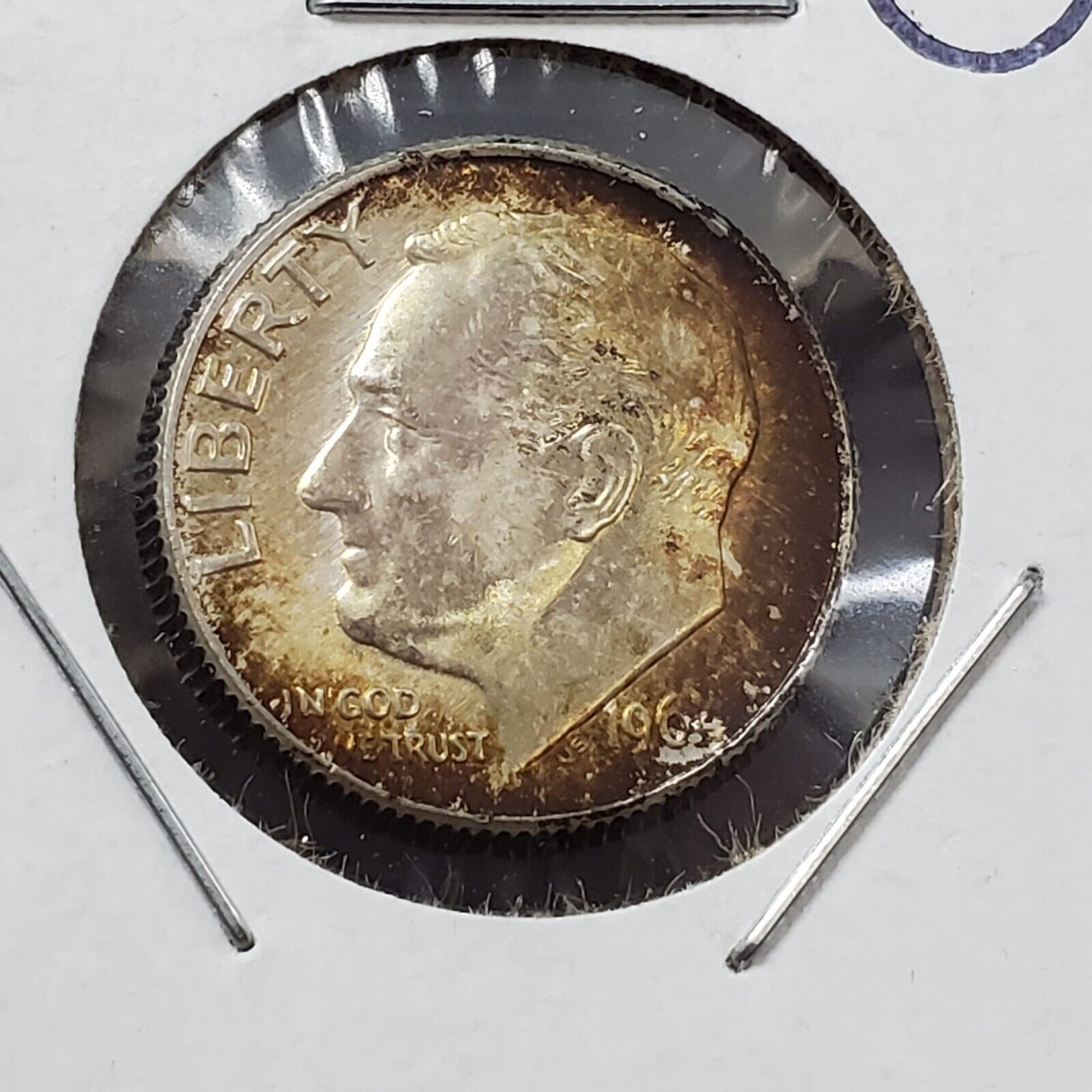 1964 D Roosevelt Silver Dime Coin Toning Toner PQ Amber Choice BU UNC