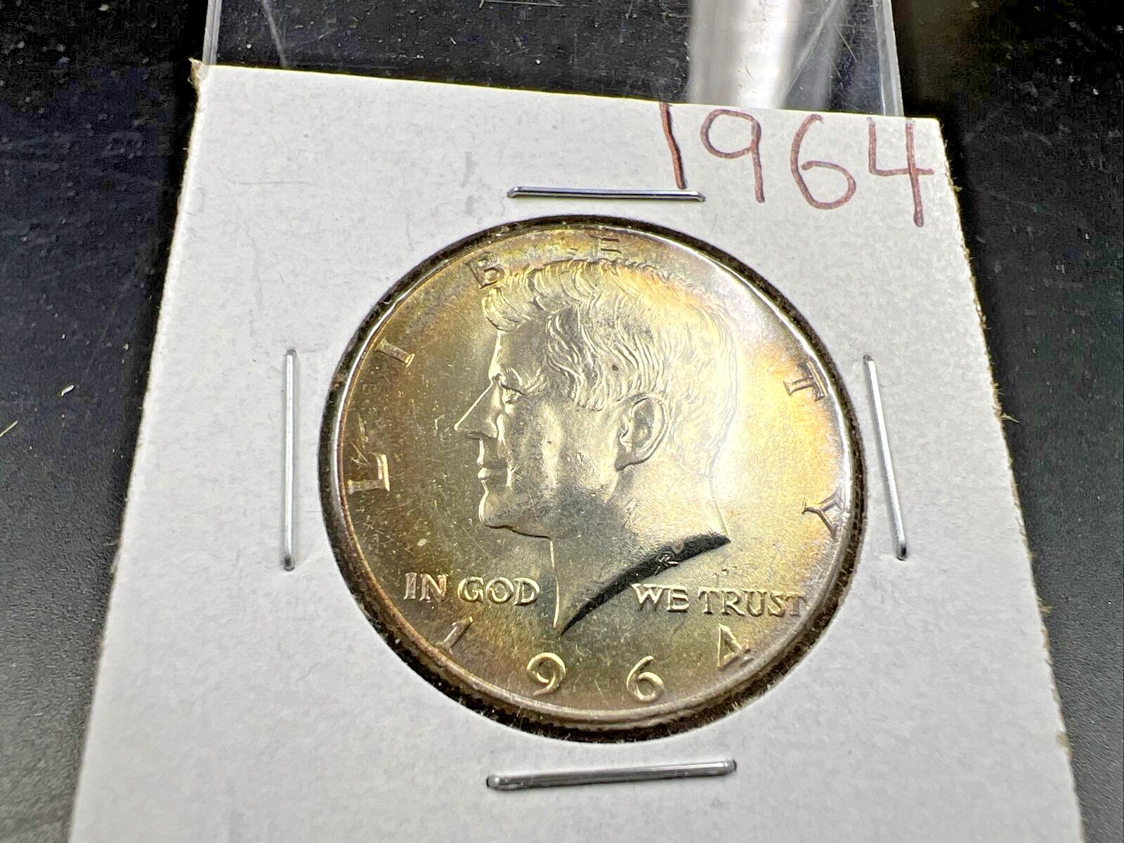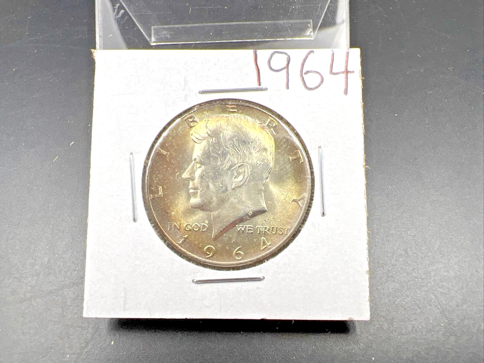 1964 P 50c Kennedy Half Dollar CH BU UNC Nice Rainbow Toning SKU#GNSQ