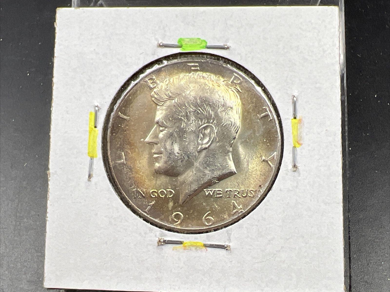 1964 P 50c Kennedy Half Dollar CH BU UNC PQ Rainbow Toning Reverse SKU#YWGN