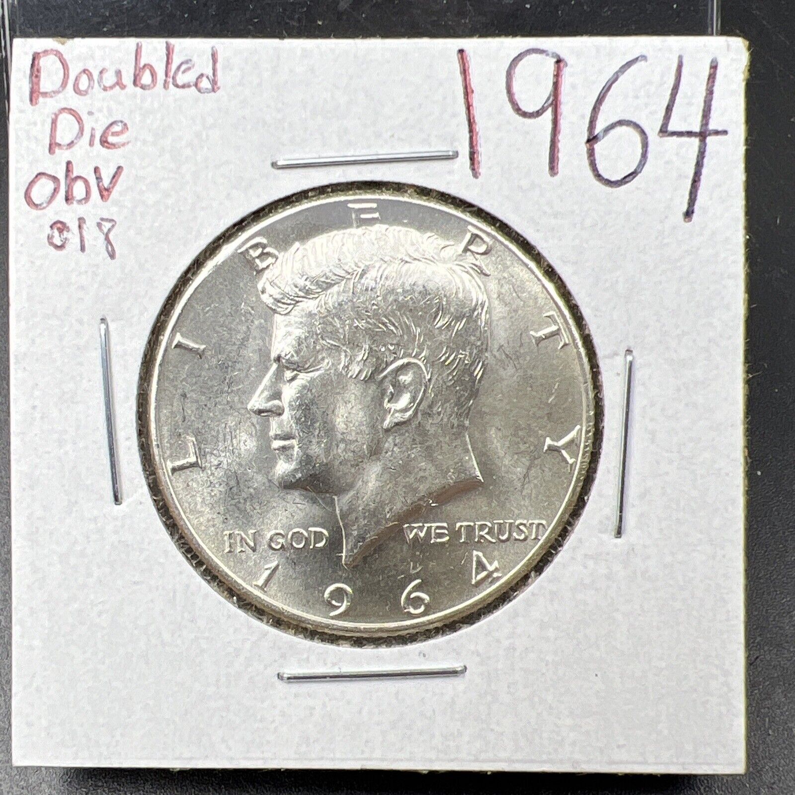 1964 P 50C Kennedy Half Dollar Coin DDO Double Die OBV Minor Variety AU