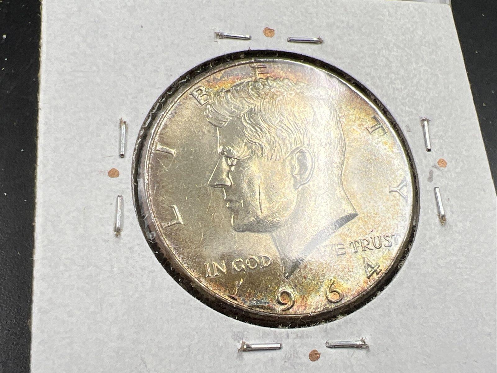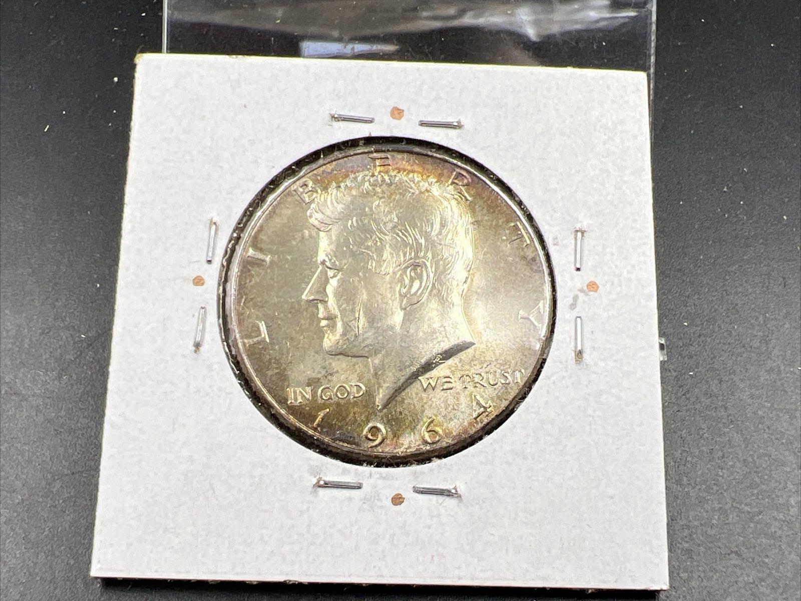 1964 P 50c Kennedy Silver Half Dollar CH BU UNC Rainbow Toning Reverse SKU#BRN