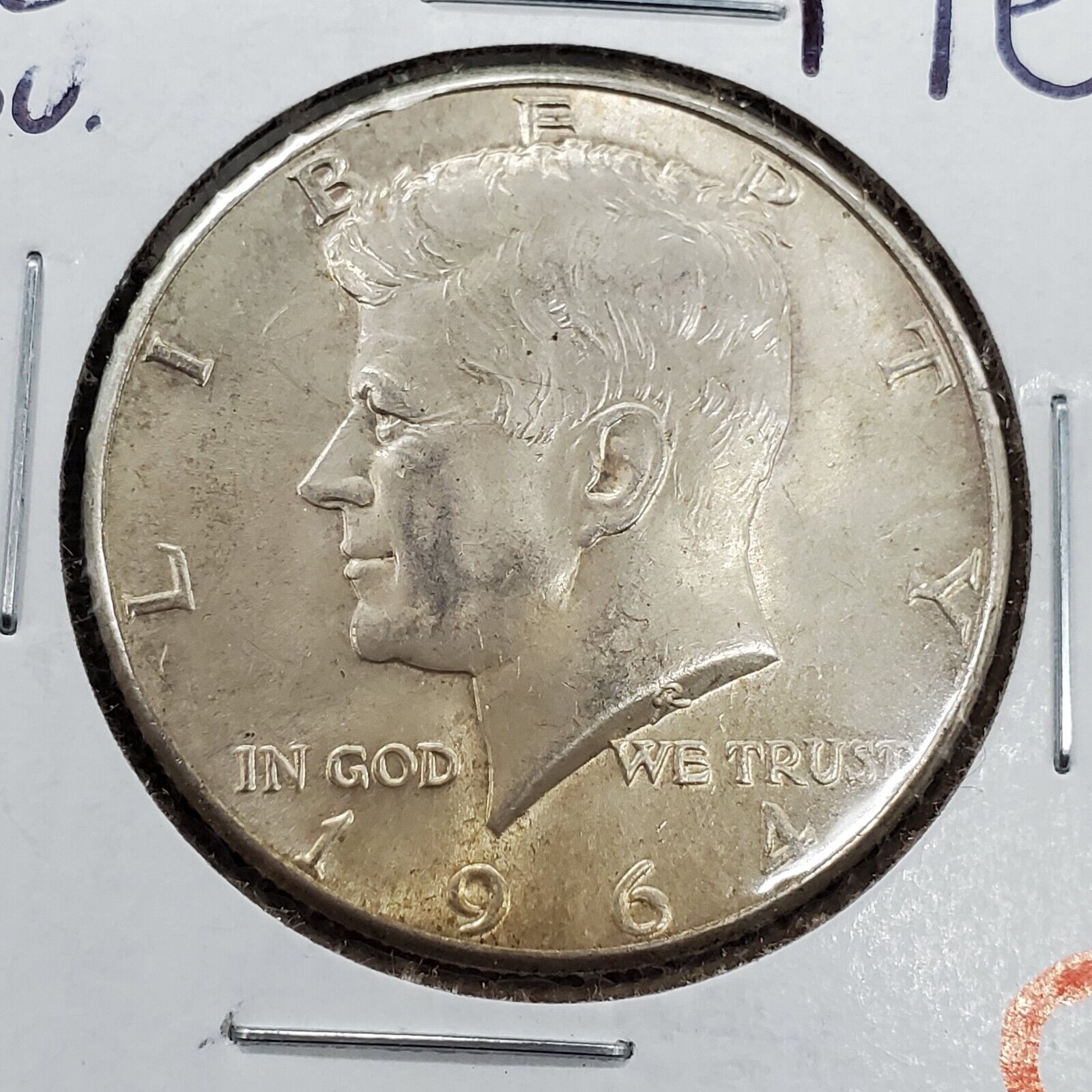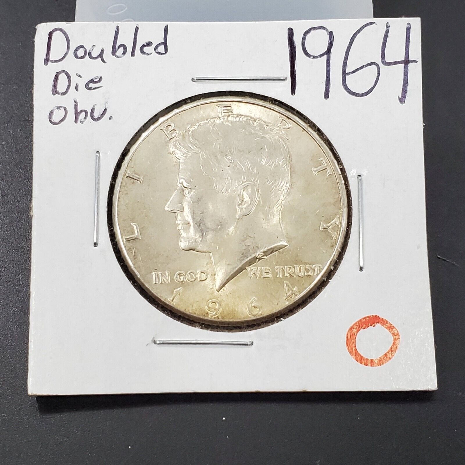 1964 P 50c Kennedy Silver Half Dollar Double Die Obverse Minor Variety #O AU