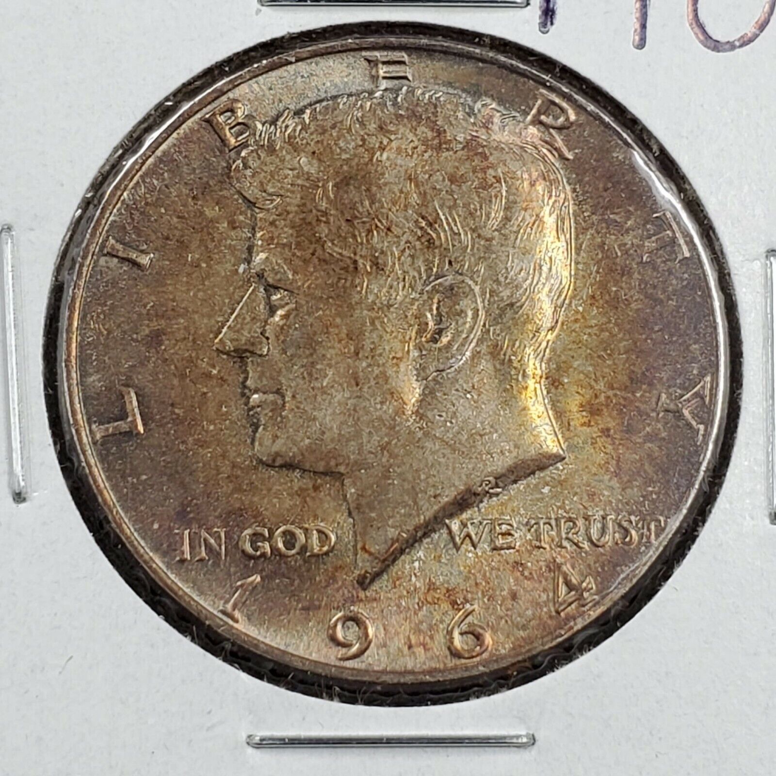 1964 P 90% Silver Kennedy Half Dollar Coin Choice BU UNC PQ Toning Toner