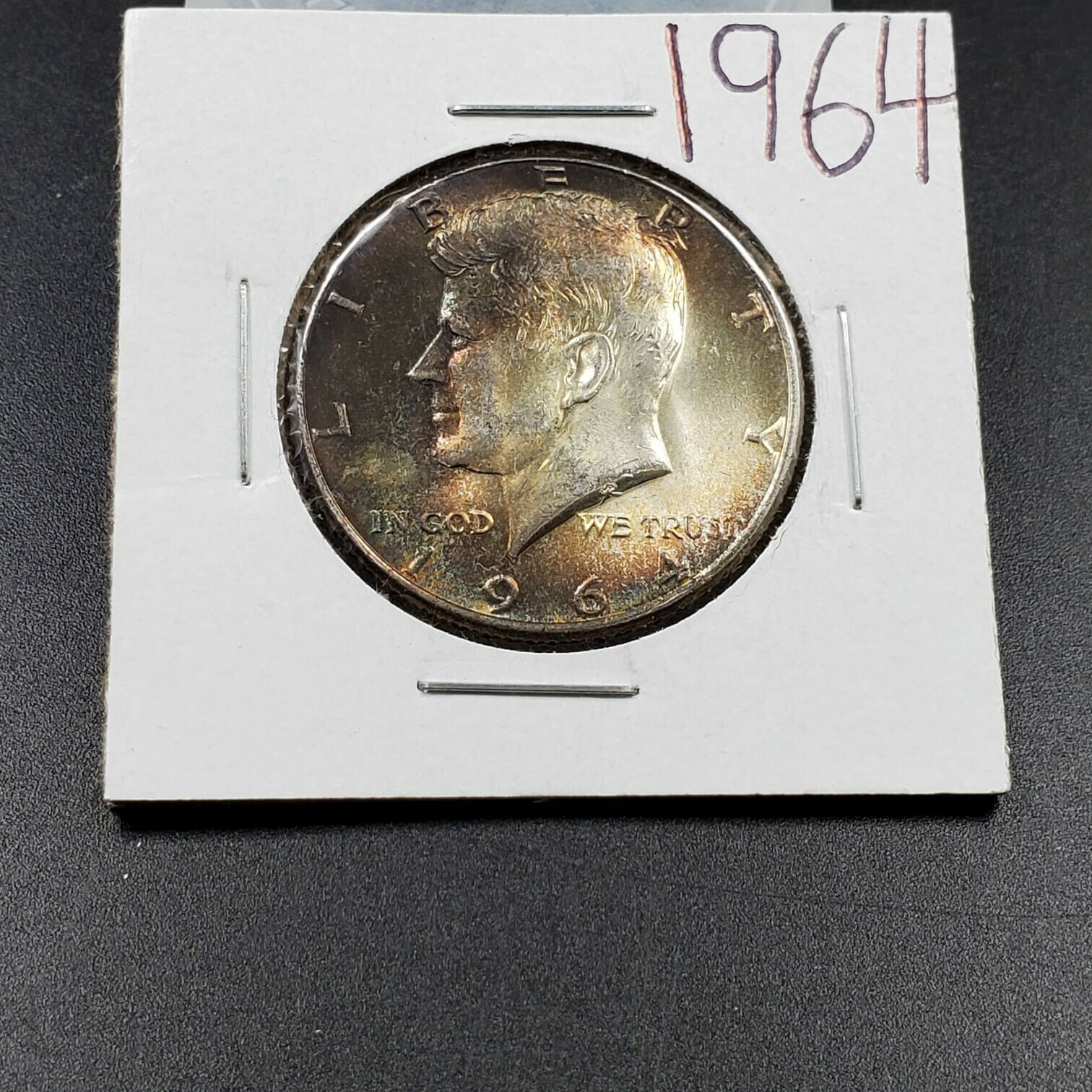1964 P Kennedy 90% Silver Half Dollar Coin Choice BU PQ Nice Toning Toner