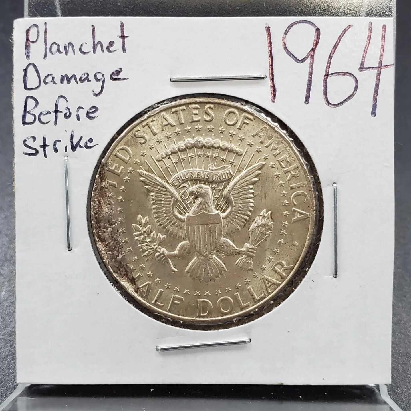 1964 P Kennedy Half Dollar Coin Planchet Damage Before Strike Major Error CH AU