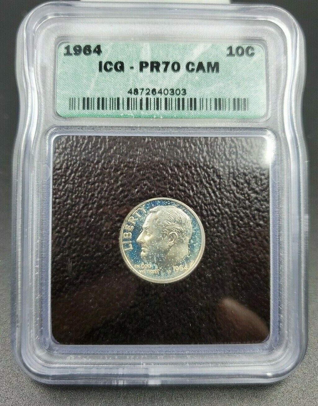 1964 P Proof Roosevelt Silver Dime ICG PR70 Cameo * Star Blue Toning Wow Coin