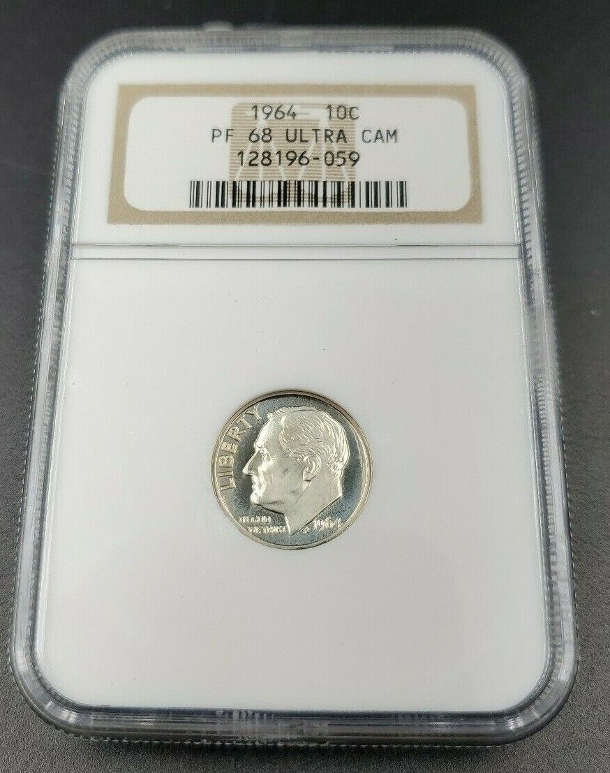 1964 P Roosevelt Silver Dime Coin NGC PF68 UCAM DCAM Deep Cameo Gem Proof
