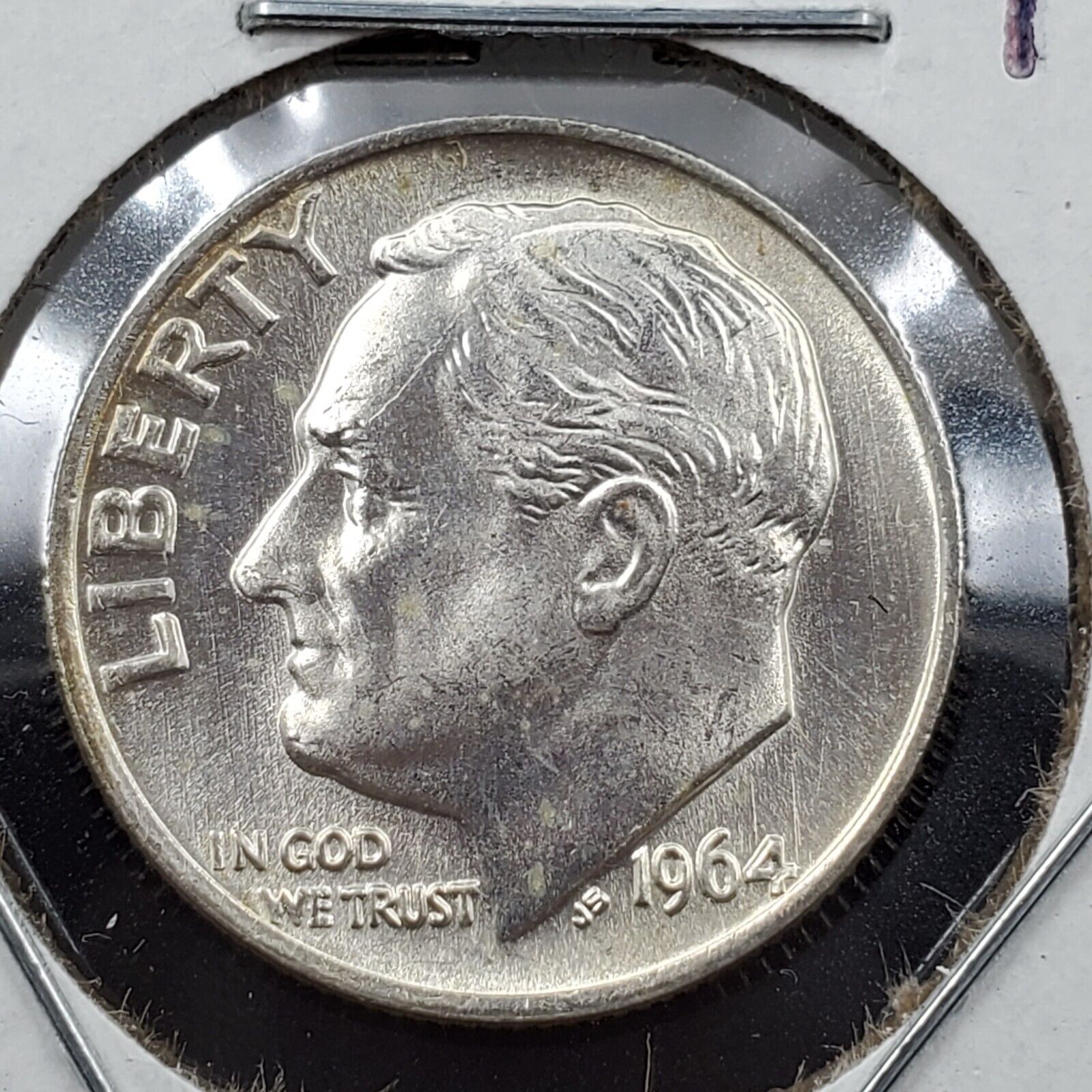 1964 P Roosevelt Silver Dime Die Crak on Forehead Variety CH BU UNC