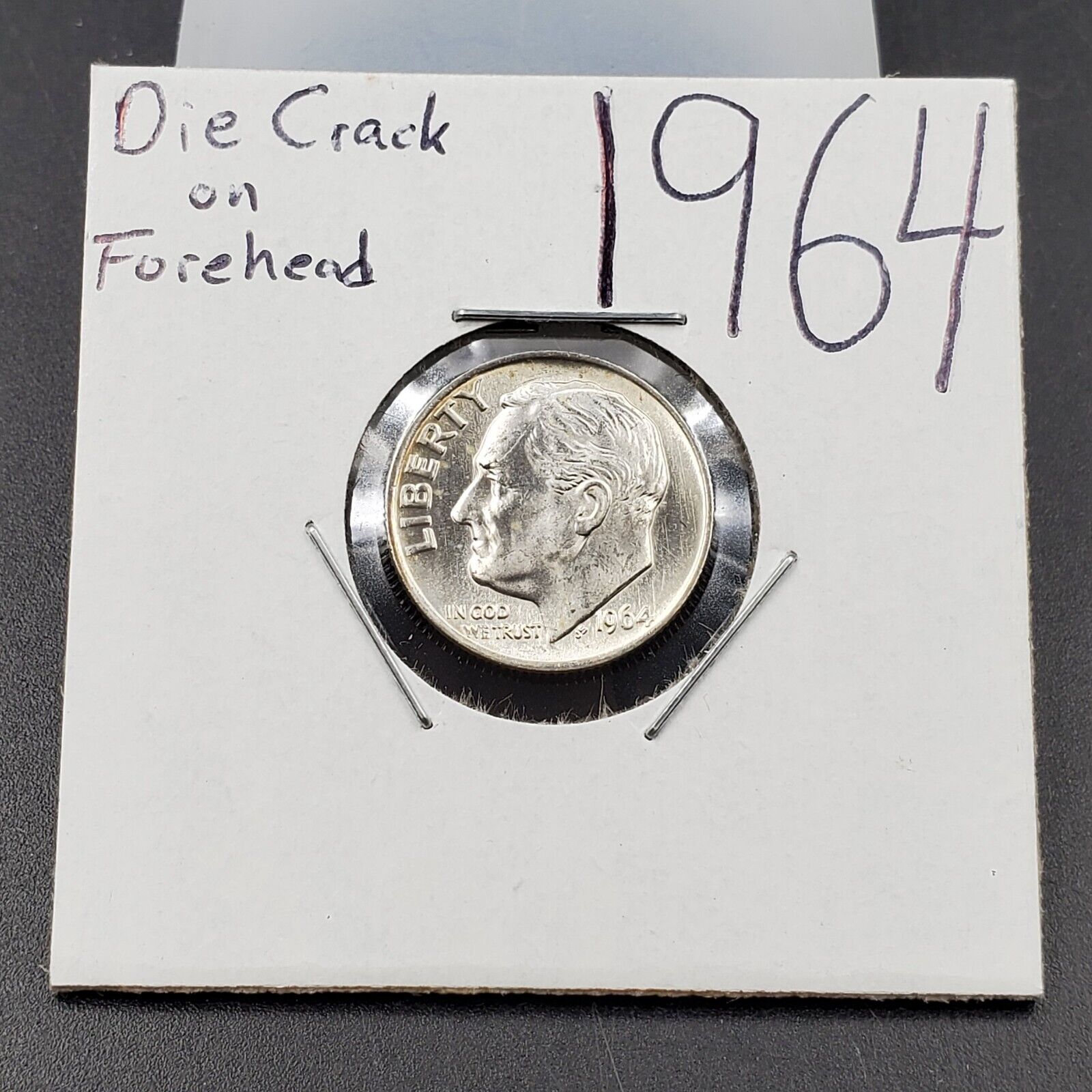 1964 P Roosevelt Silver Dime Die Crack on Forehead Variety CH BU UNC