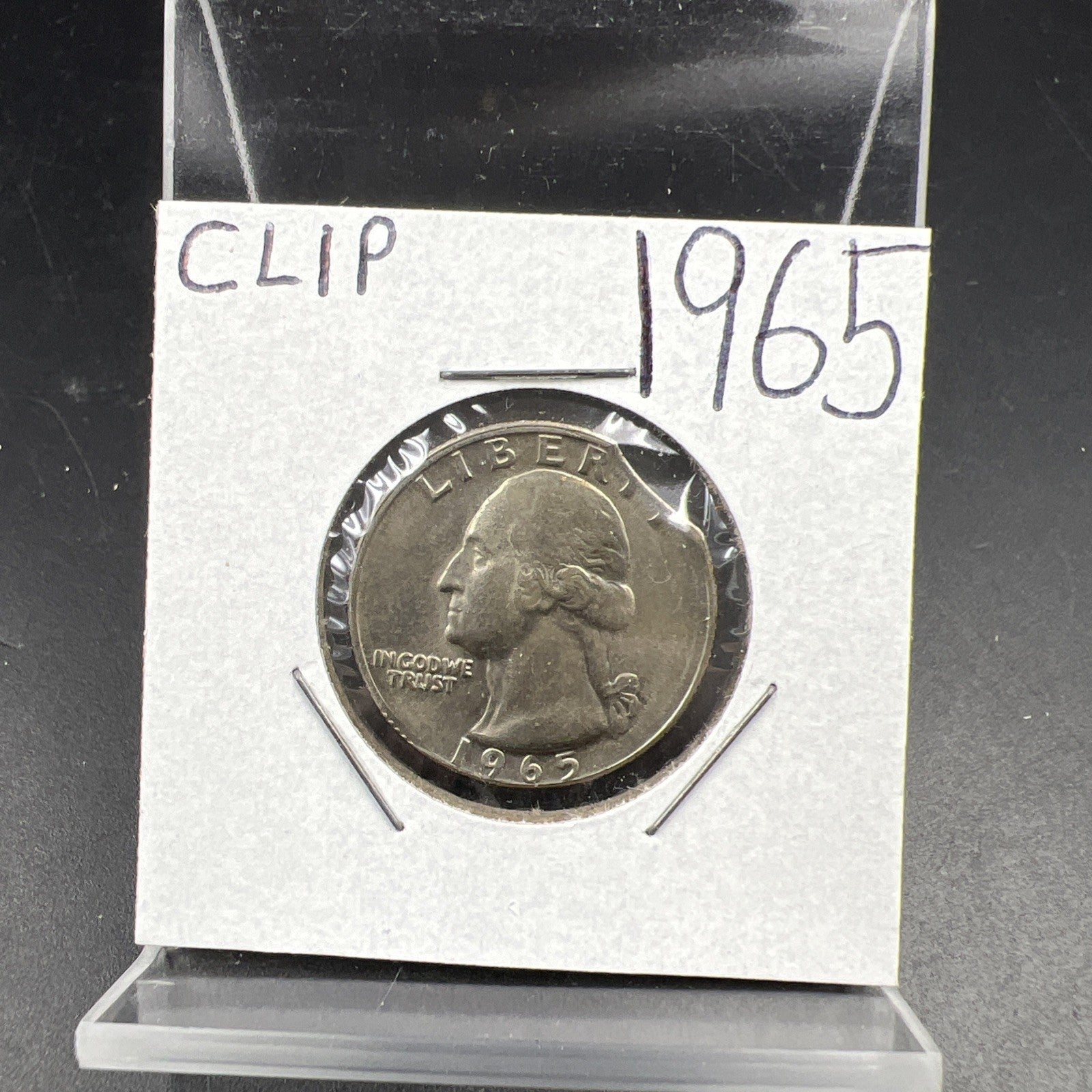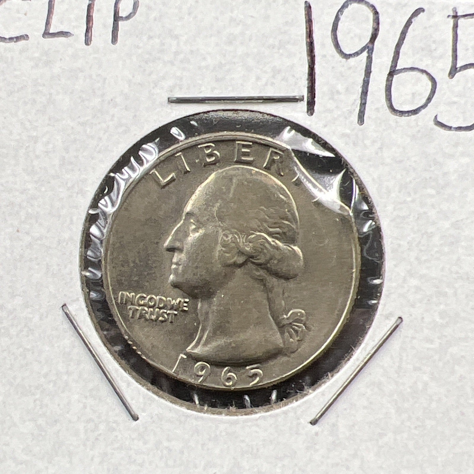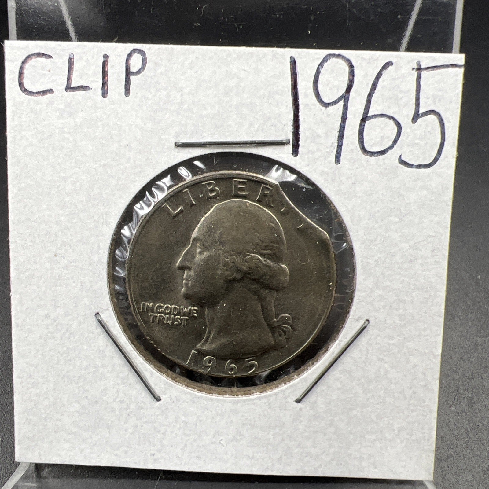 1965 25c Washington Copper Nickel Quarter Coin Clipped Error BU UNC