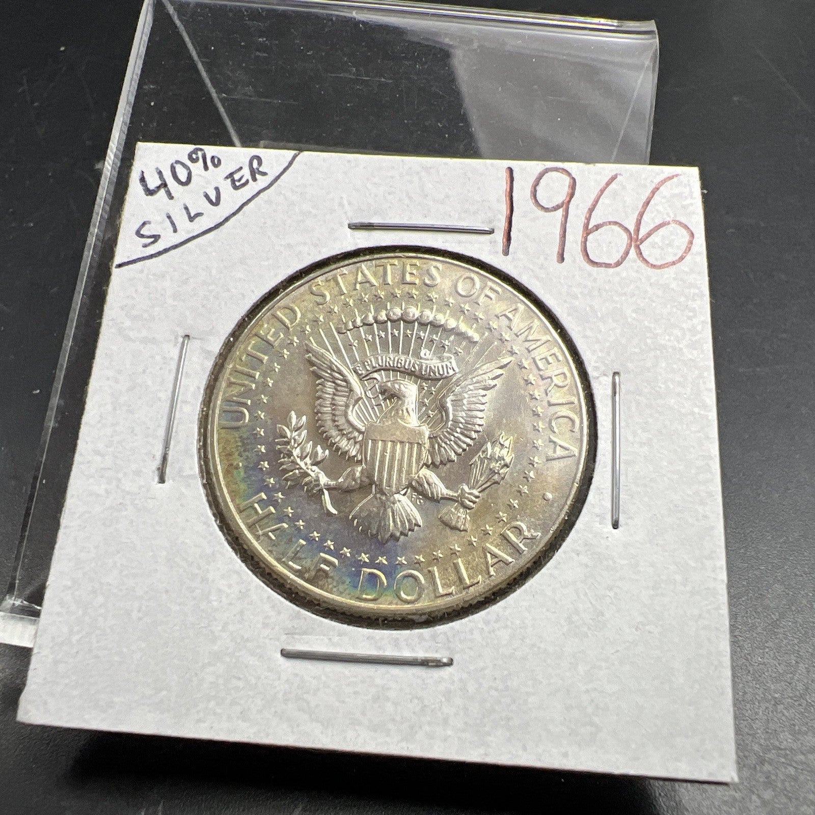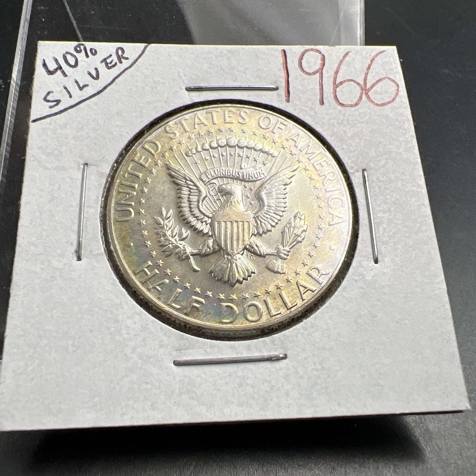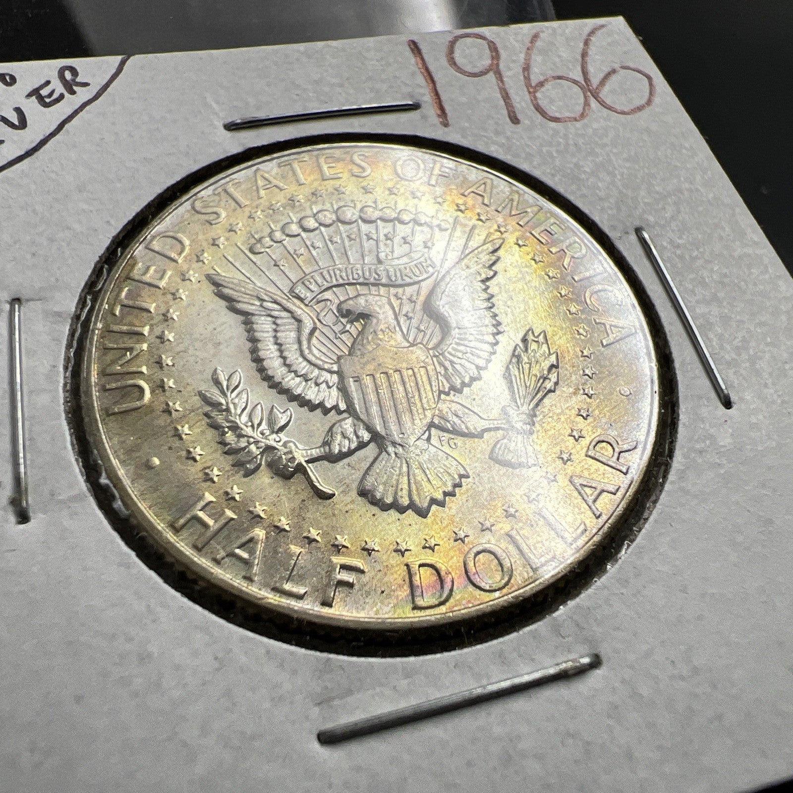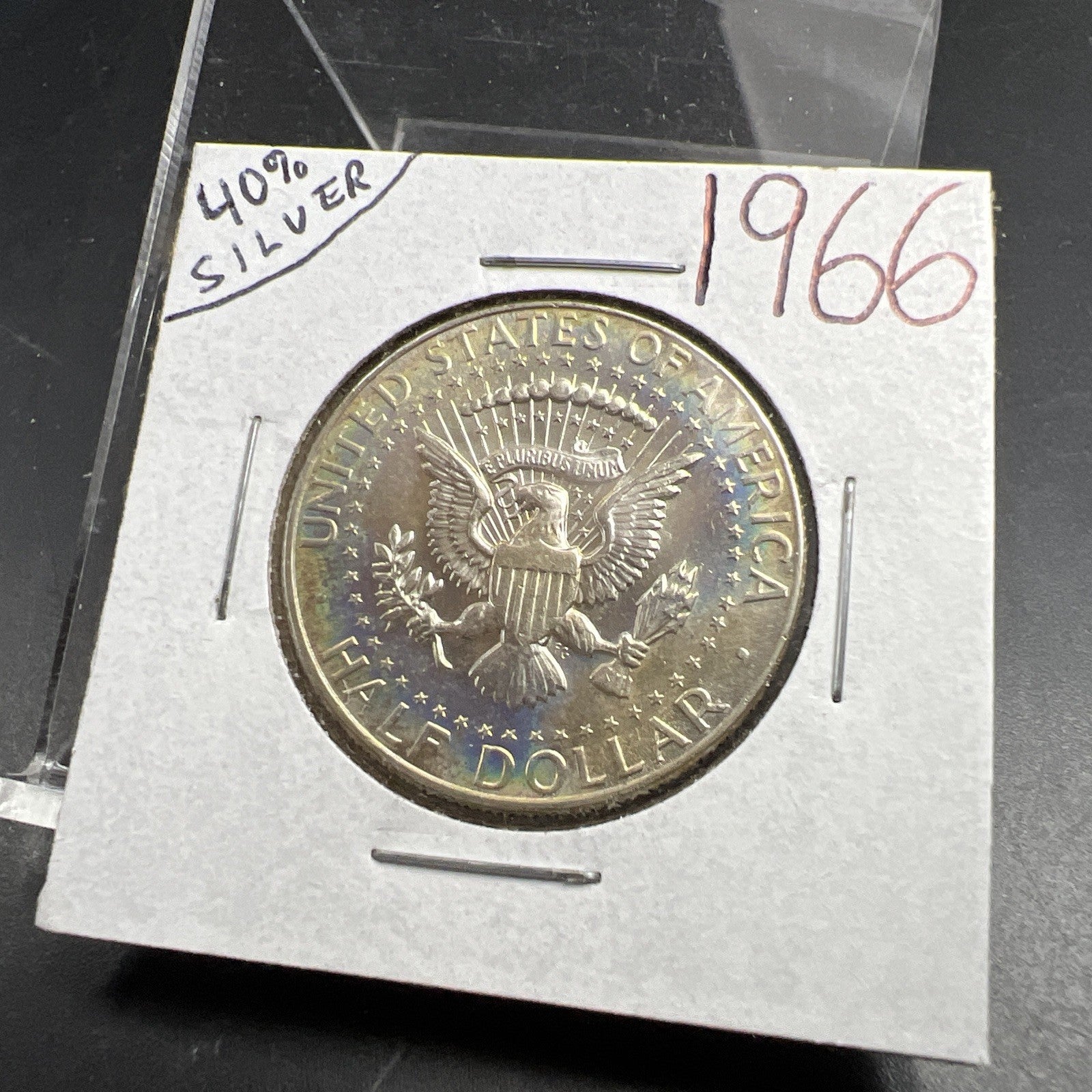 1966 40% Silver Kennedy 50c Half Dollar Coin Nice Toning Toner SKU#J