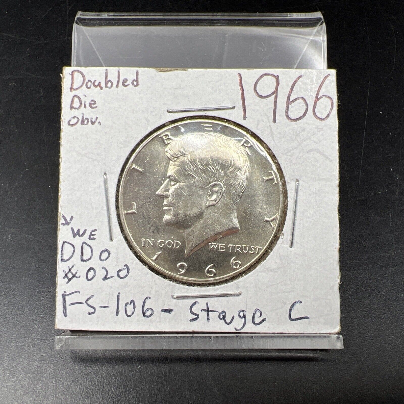 1966 50c Kennedy 40% Silver Half Dollar DDO Double Die Obverse FS-106 SMS UNC