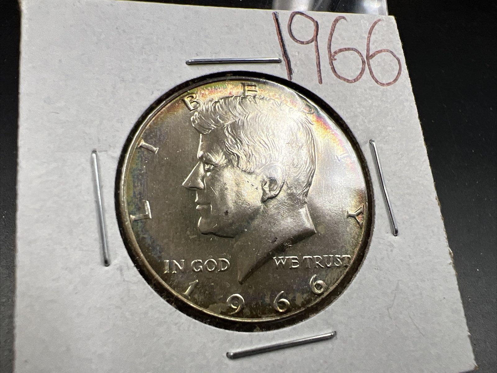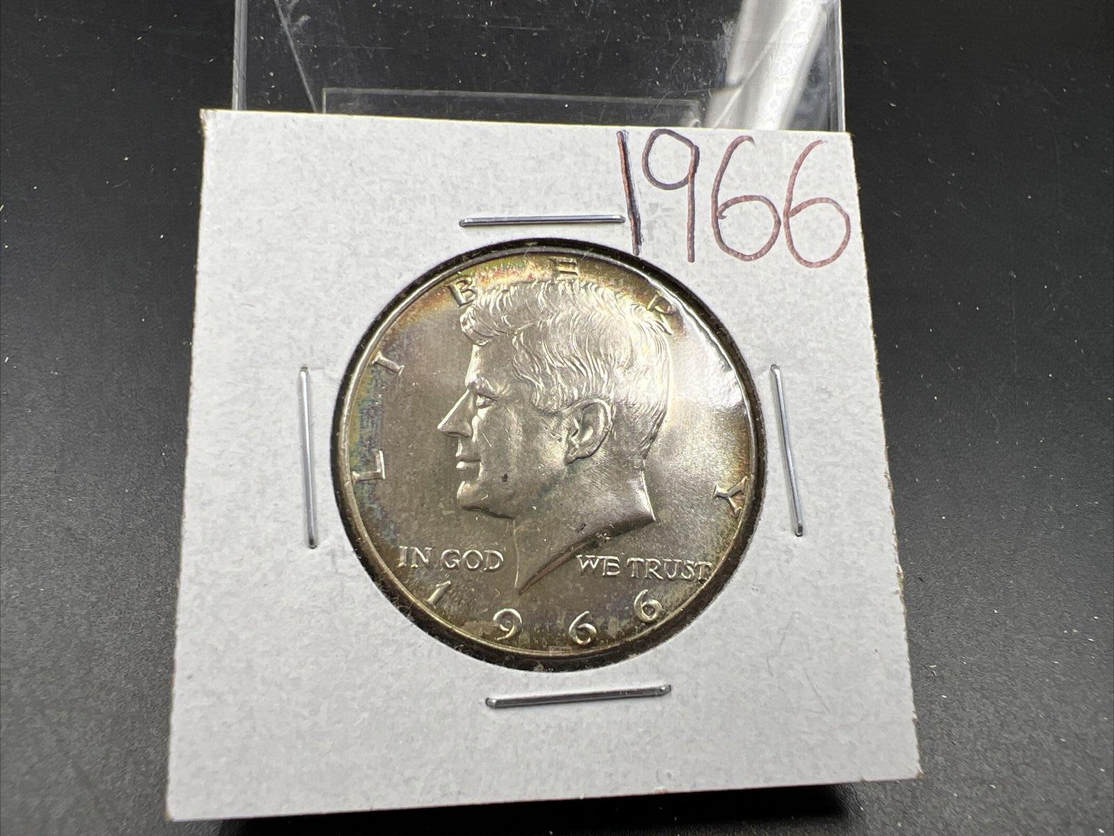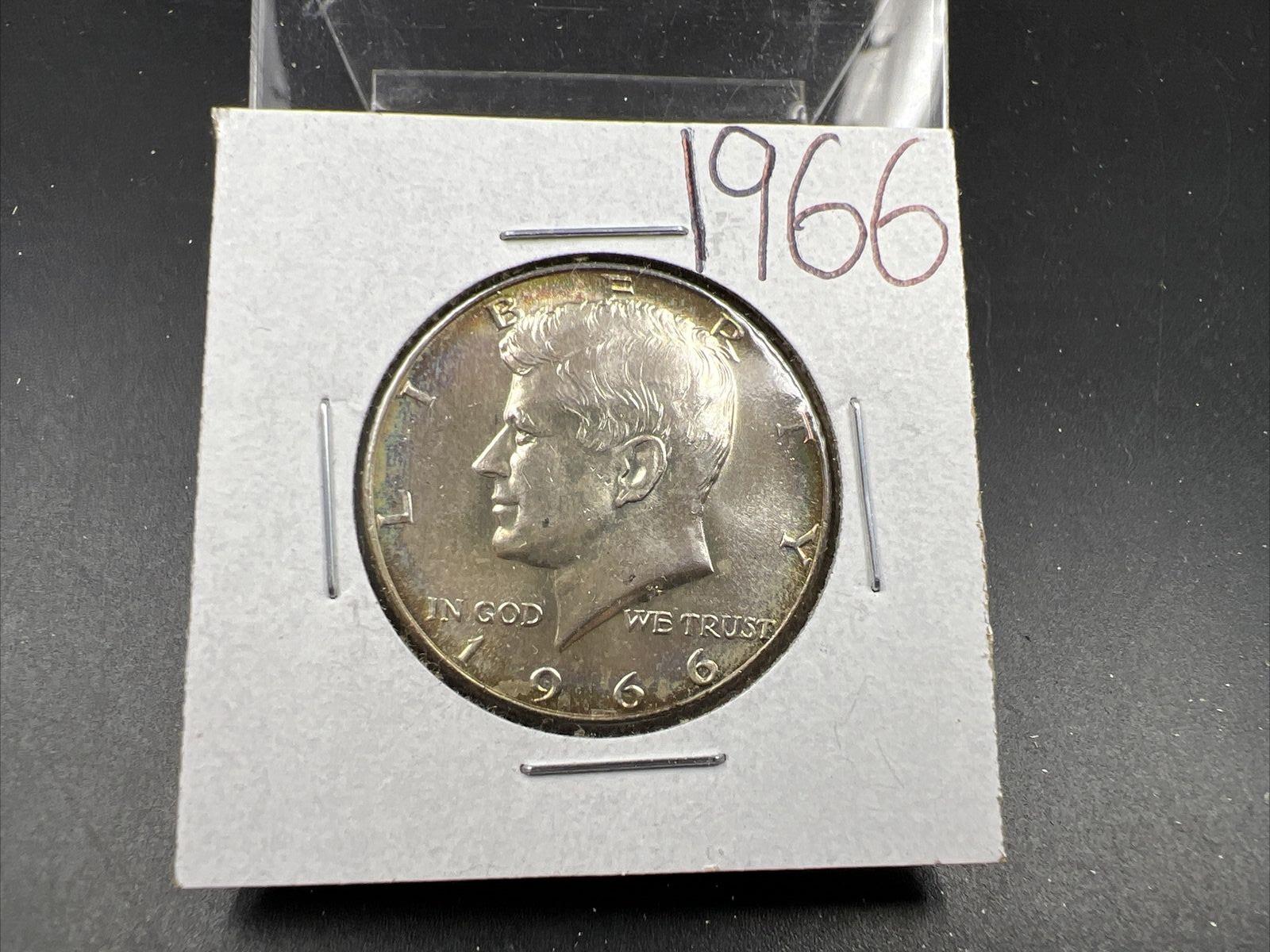 1966 50c Kennedy Silver Half Dollar BU Nice Original Toning Toner sku#brwn