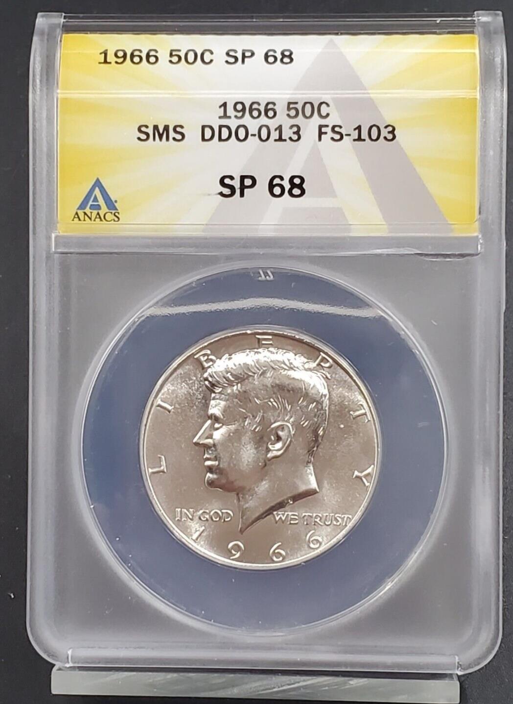 1966 P SMS Kennedy Half Dollar Coin ANACS SP68 Variety DDO-013 FS-103 TOP POP