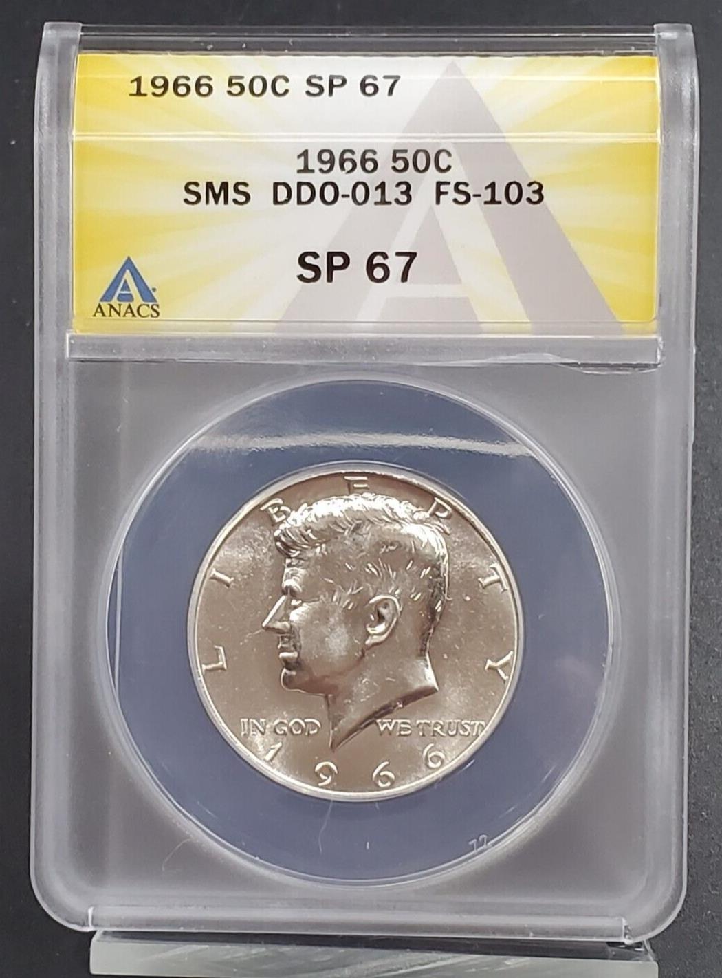 1966 P SMS Kennedy Silver Half Dollar Coin ANACS SP67 Variety DDO-013 FS-103