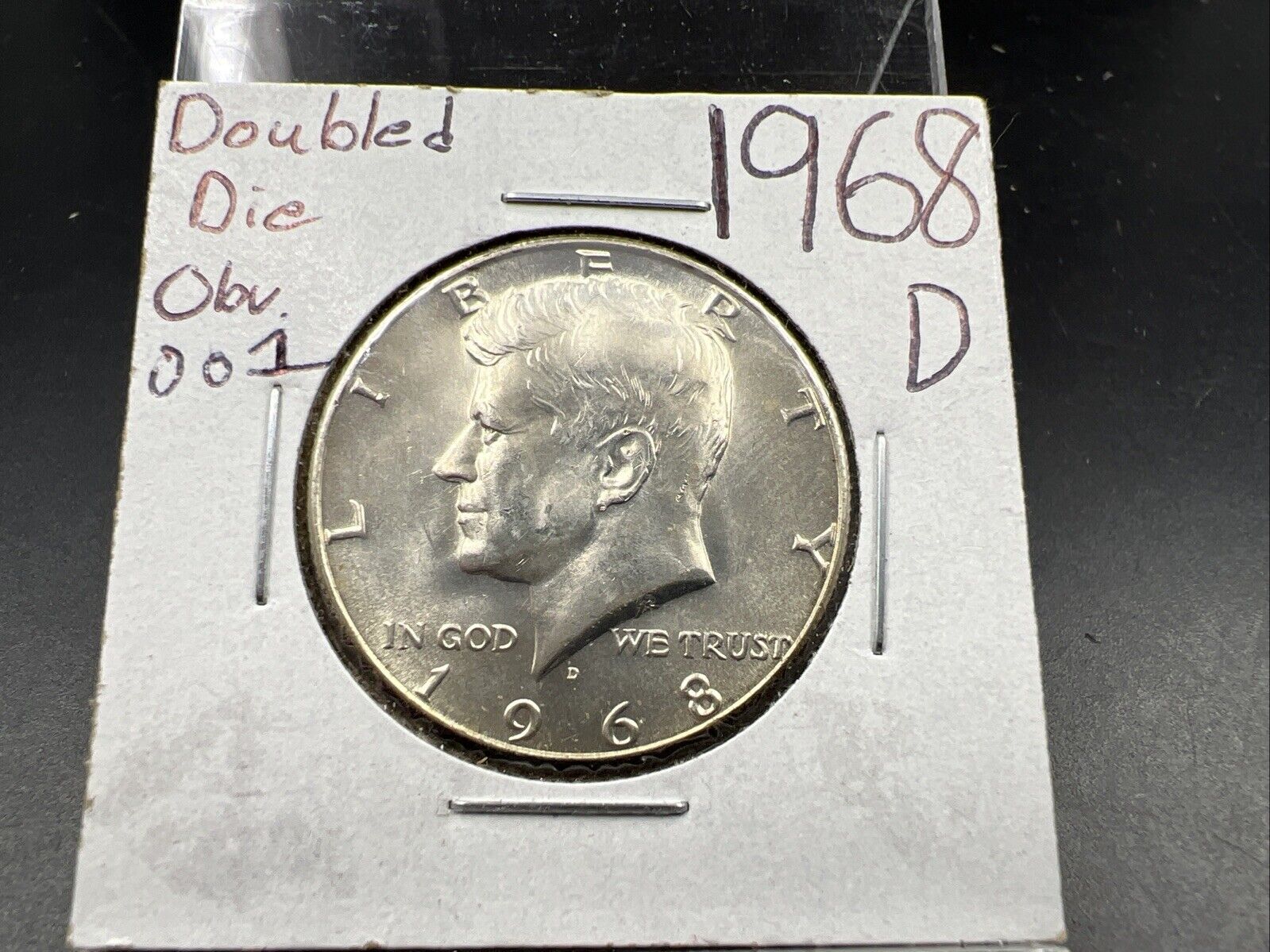 1968 D 50c Kennedy Silver Half Dollar Coin CH BU DDO 001 Double Die Obverse