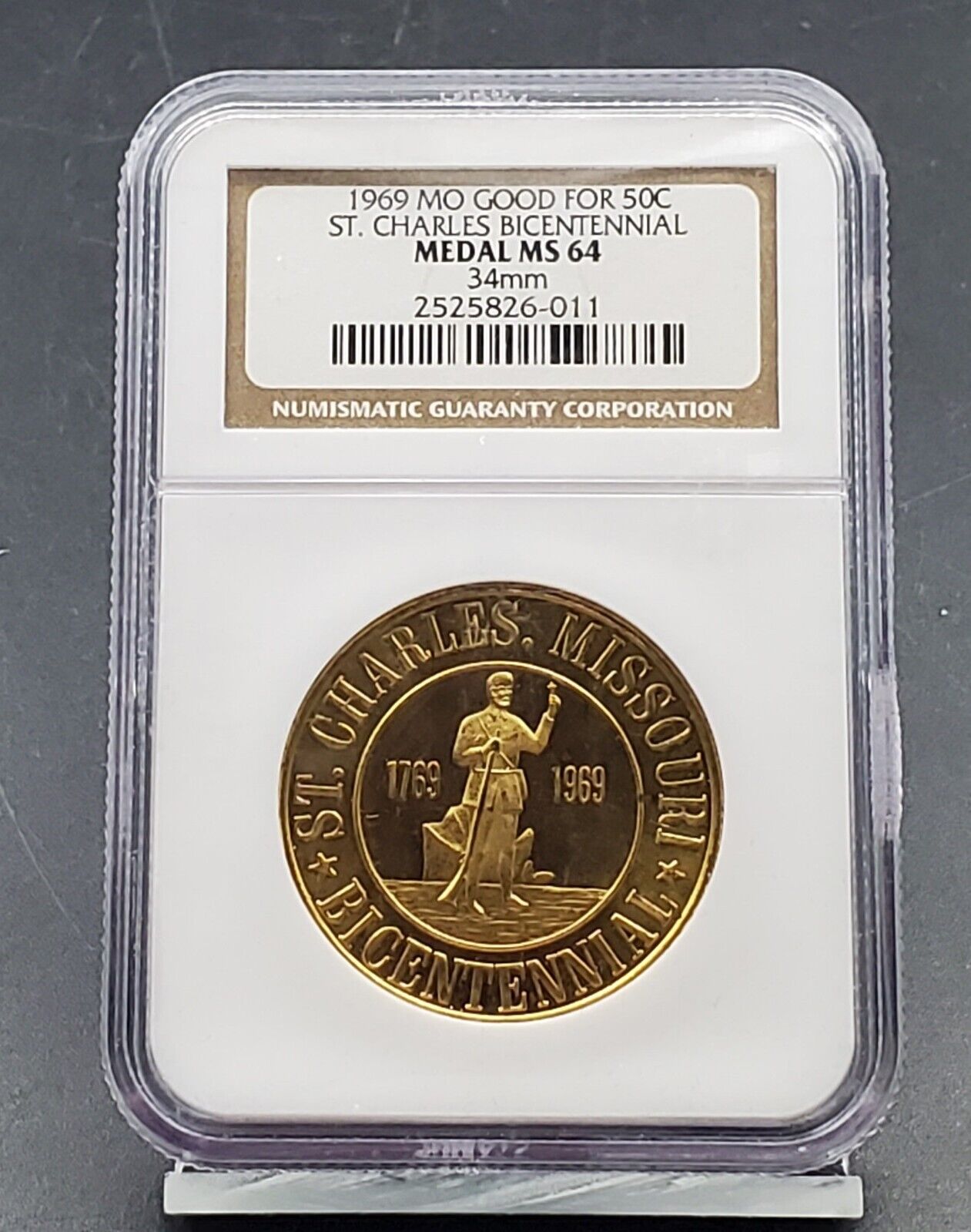 1969 MO Good for 50c St. Charles Bicentennial NGC Medal MS64 34mm
